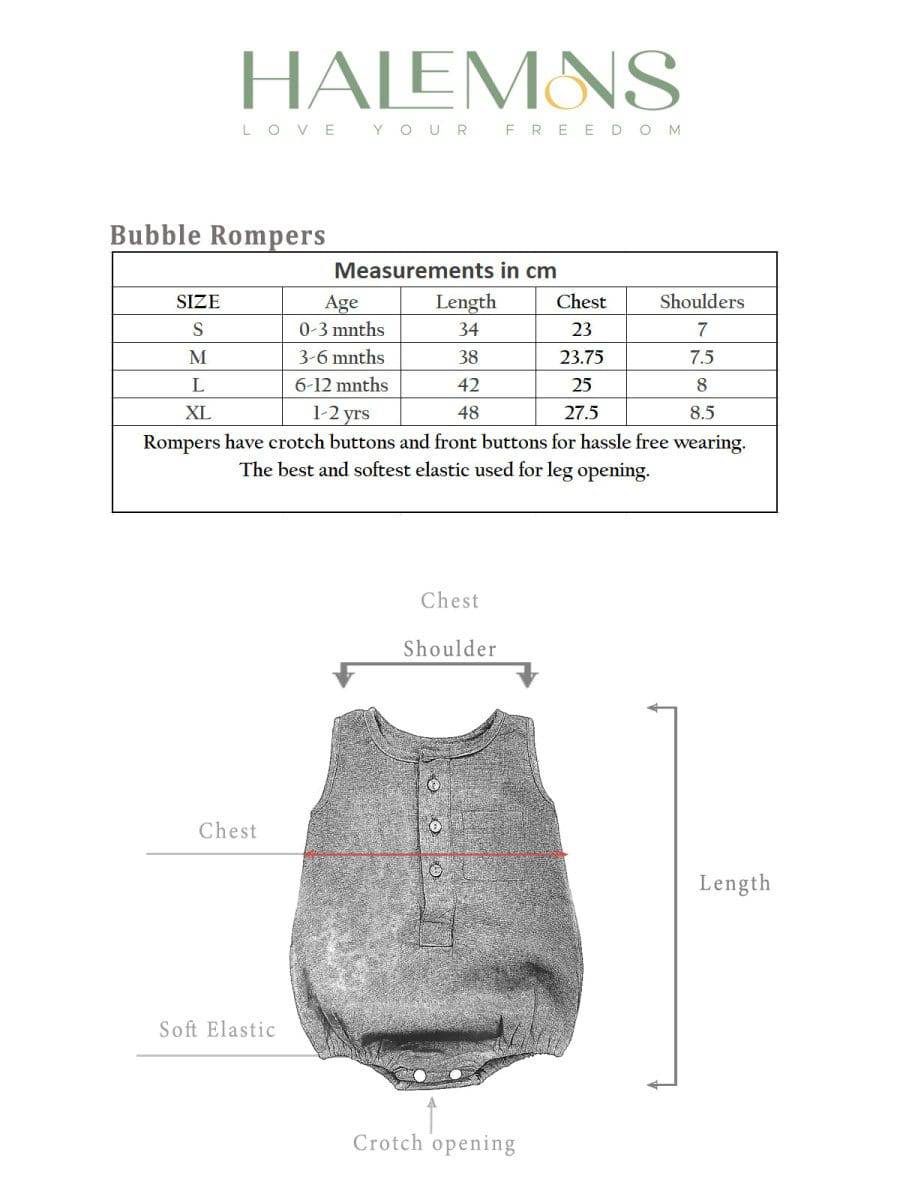 100% cotton Gender neutral bubble romper with elastic at leg opening,