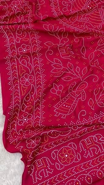 Design: Featuring the Khadi Chandrani Bandhani design, the dupatta boasts vibrant prints that are both eye-catching and culturally significant. The bandhani pattern adds a touch of authenticity and charm.