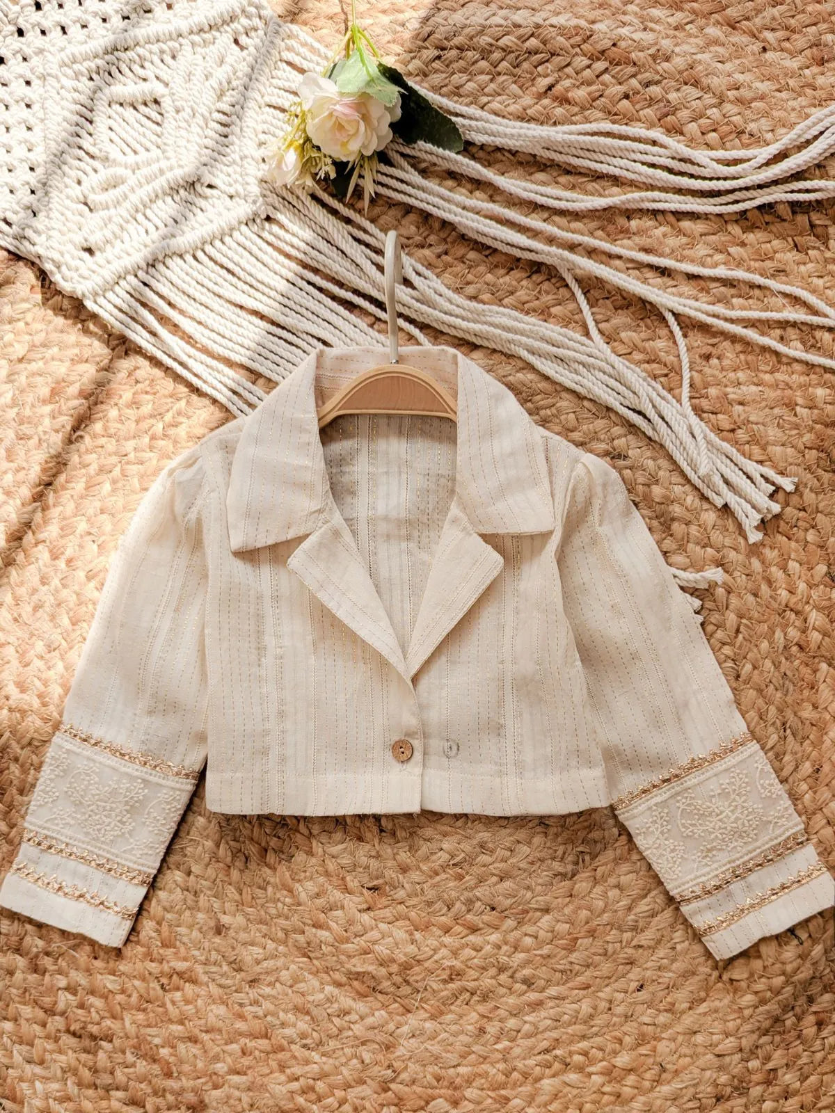 This all in one Mini Jacket a fashion statement to transform a regular dress into a stylish rich outfit. Style your girls in the most comfortable and stylish cotton jacket designed for long wearing. hours.