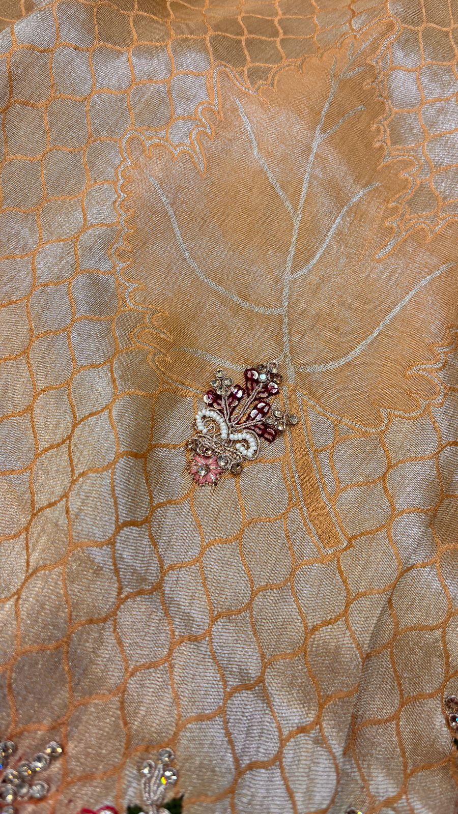 • Work: Each saree is meticulously adorned with handwork by skilled artisans, adding a unique touch that speaks of heritage and fine craftsmanship.