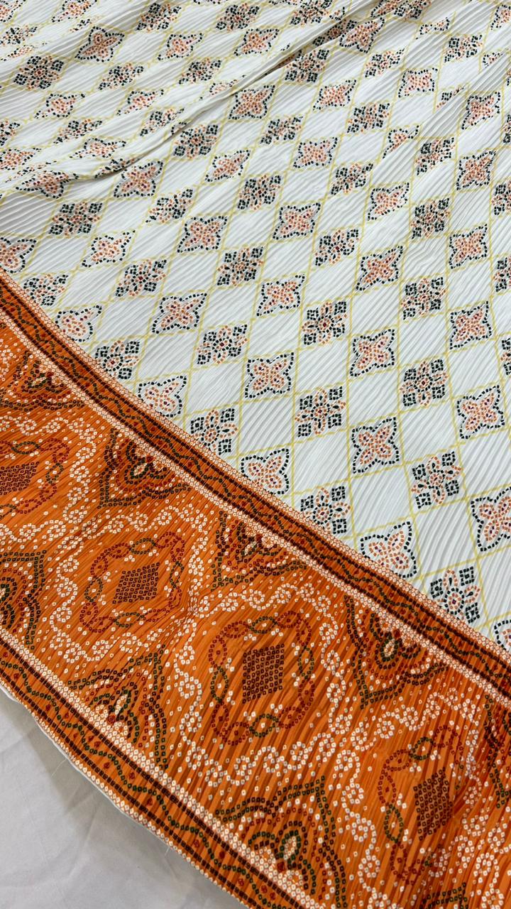 Explore the enchanting allure of our Patola White Style Lehanga Choli – a versatile and eye-catching ensemble perfect for various celebrations.