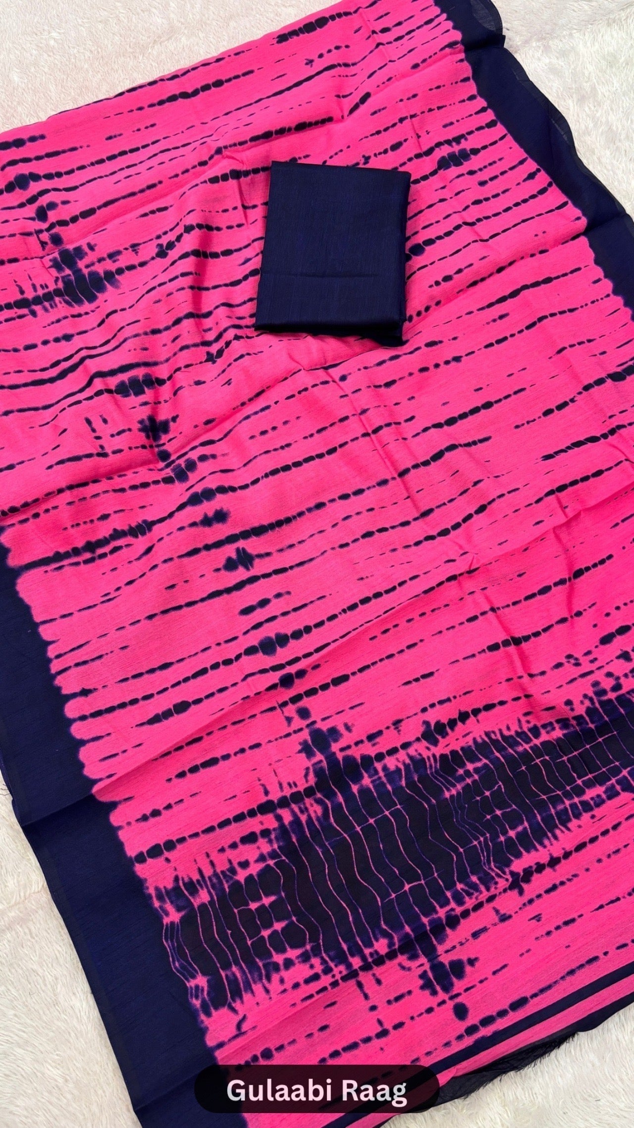 2. Print: The saree features authentic Fancy prints, a traditional form of block printing originating from the All India . These prints are known for their intricate geometric patterns and vibrant natural dyes, adding a timeless elegance to the saree.