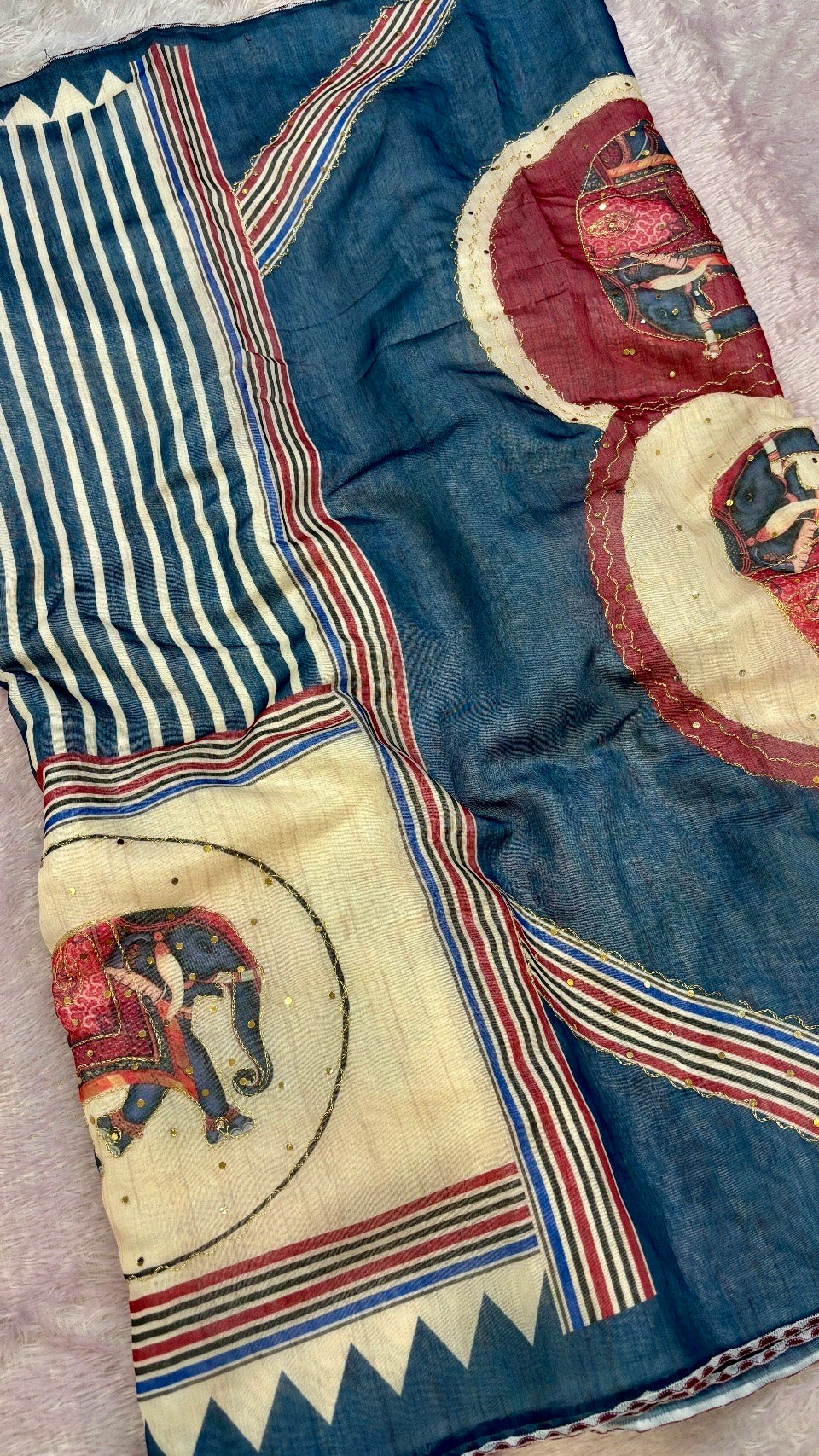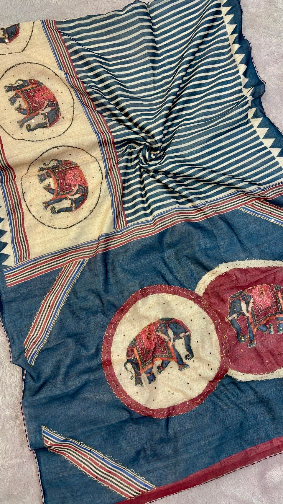 Digital Handpicked, Sequence Work Saree (Airawat Blue)