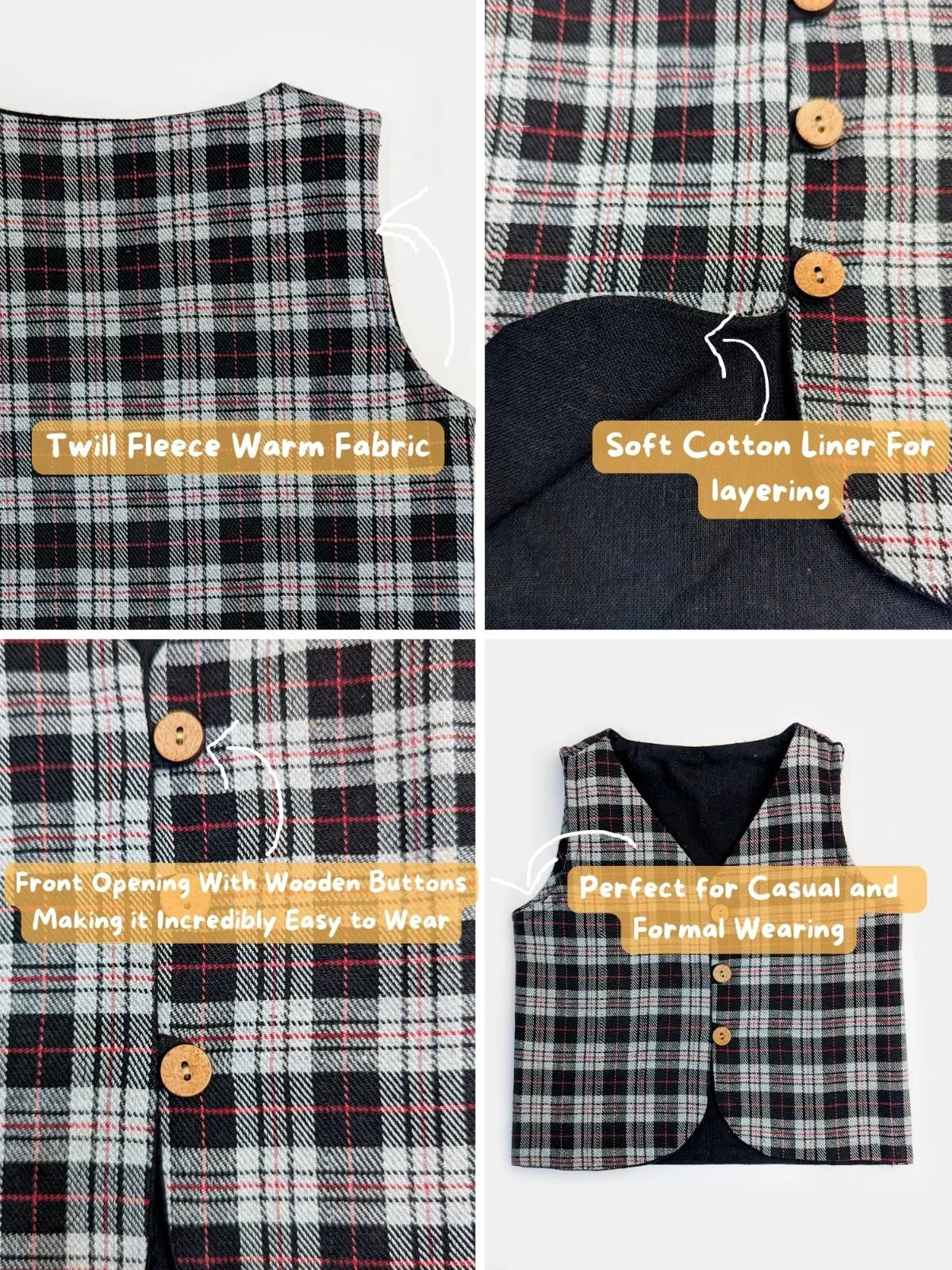 Halemons Baby Boy Fleece Sleeveless Mini Jacket Checks-Grey