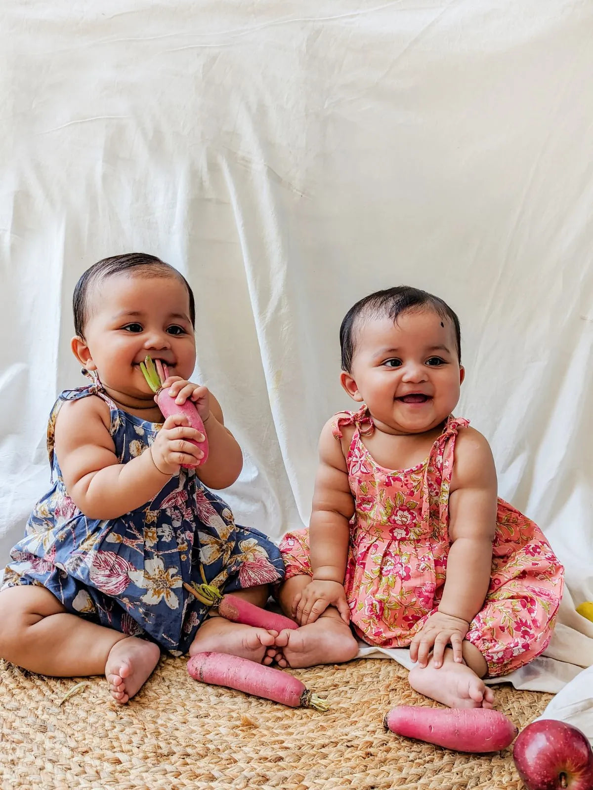 Check out our super light and comfy floral blue romper for kids, perfect for their playtime.