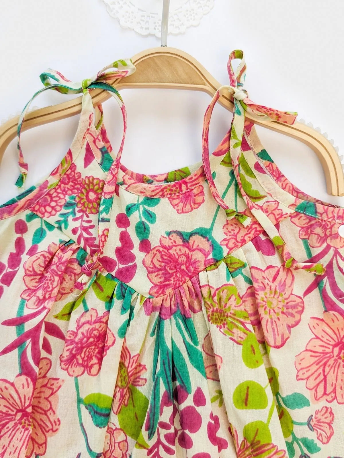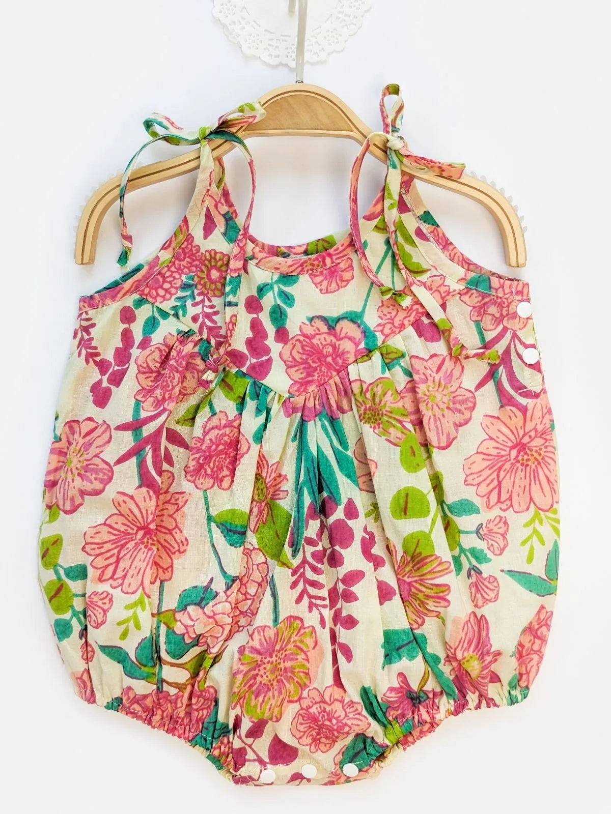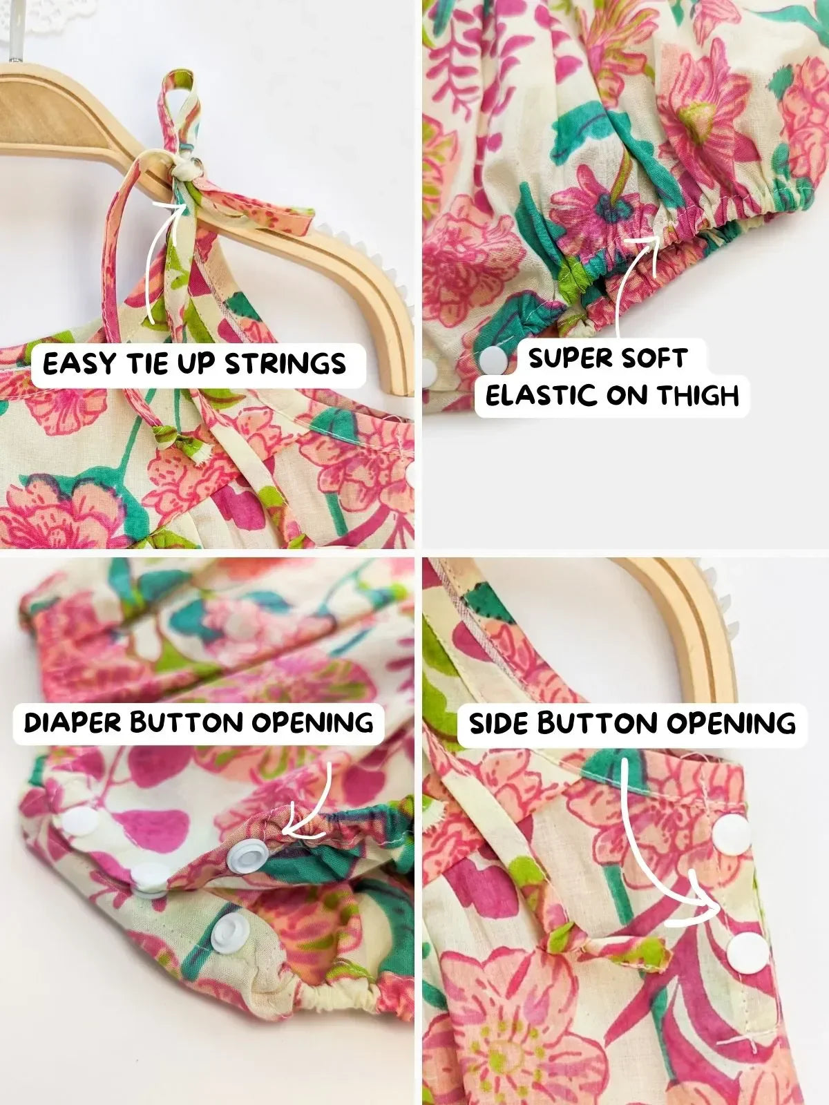Halemons Baby Girl Pure Cotton Mini Yoke Floral Romper - cream