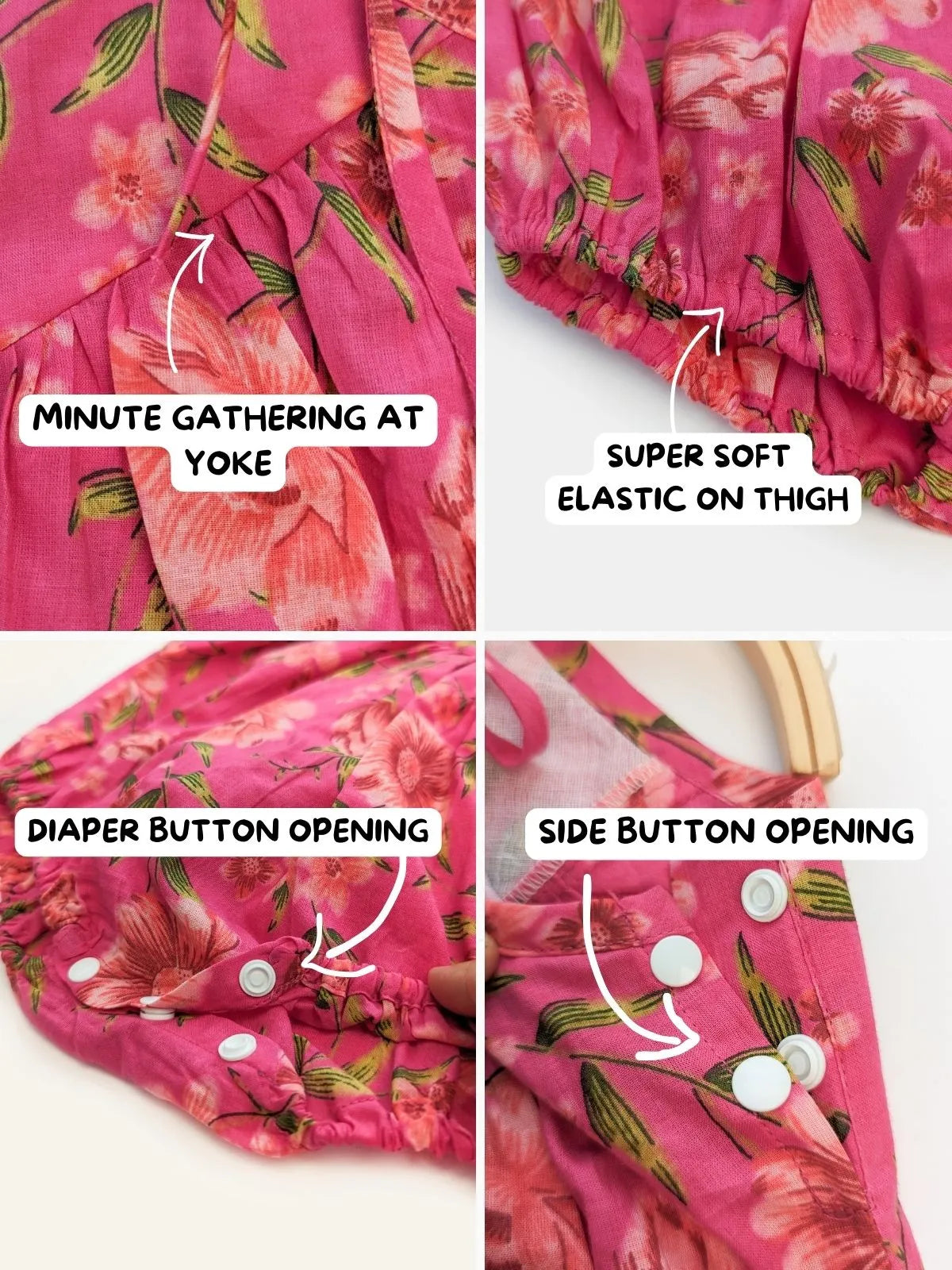 Halemons Baby Girl Pure Cotton Mini Yoke Floral Romper - pink