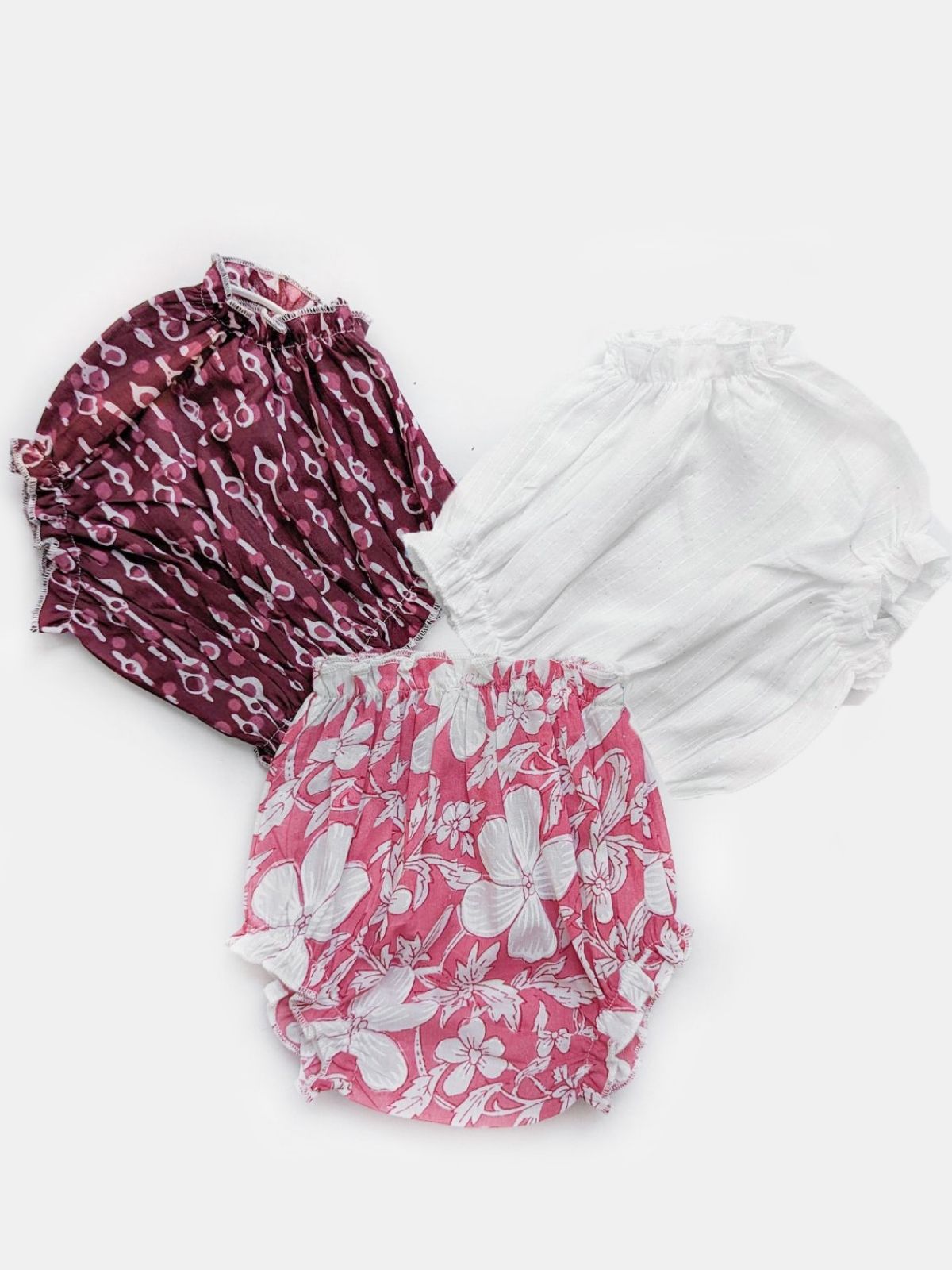 Halemons Baby Girl Pure Cotton Super Soft Butter Bloomers Pack of 3- peach-white