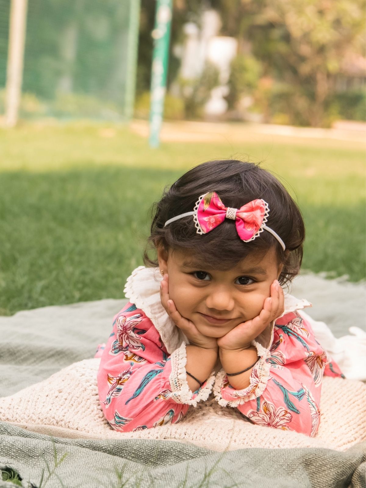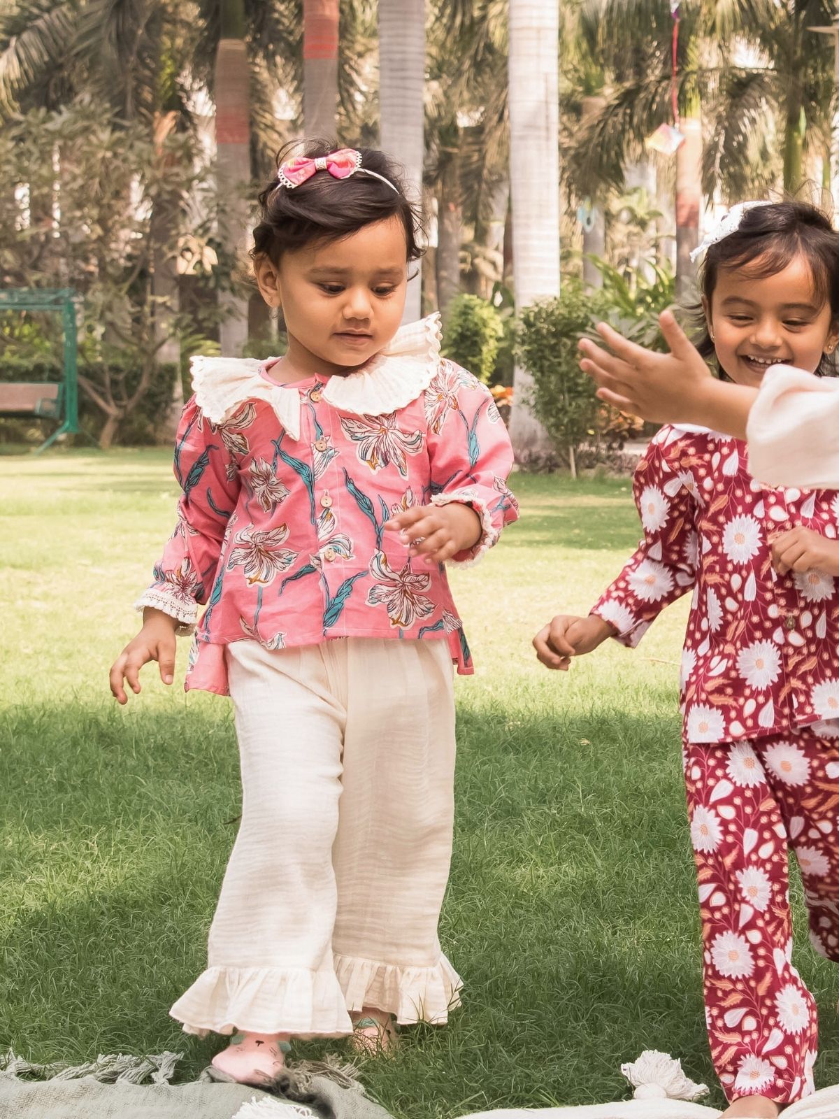 Keep your little one comfy and stylish this summer with the Pink Full Sleeved Crochet Lace Co-Ord set,