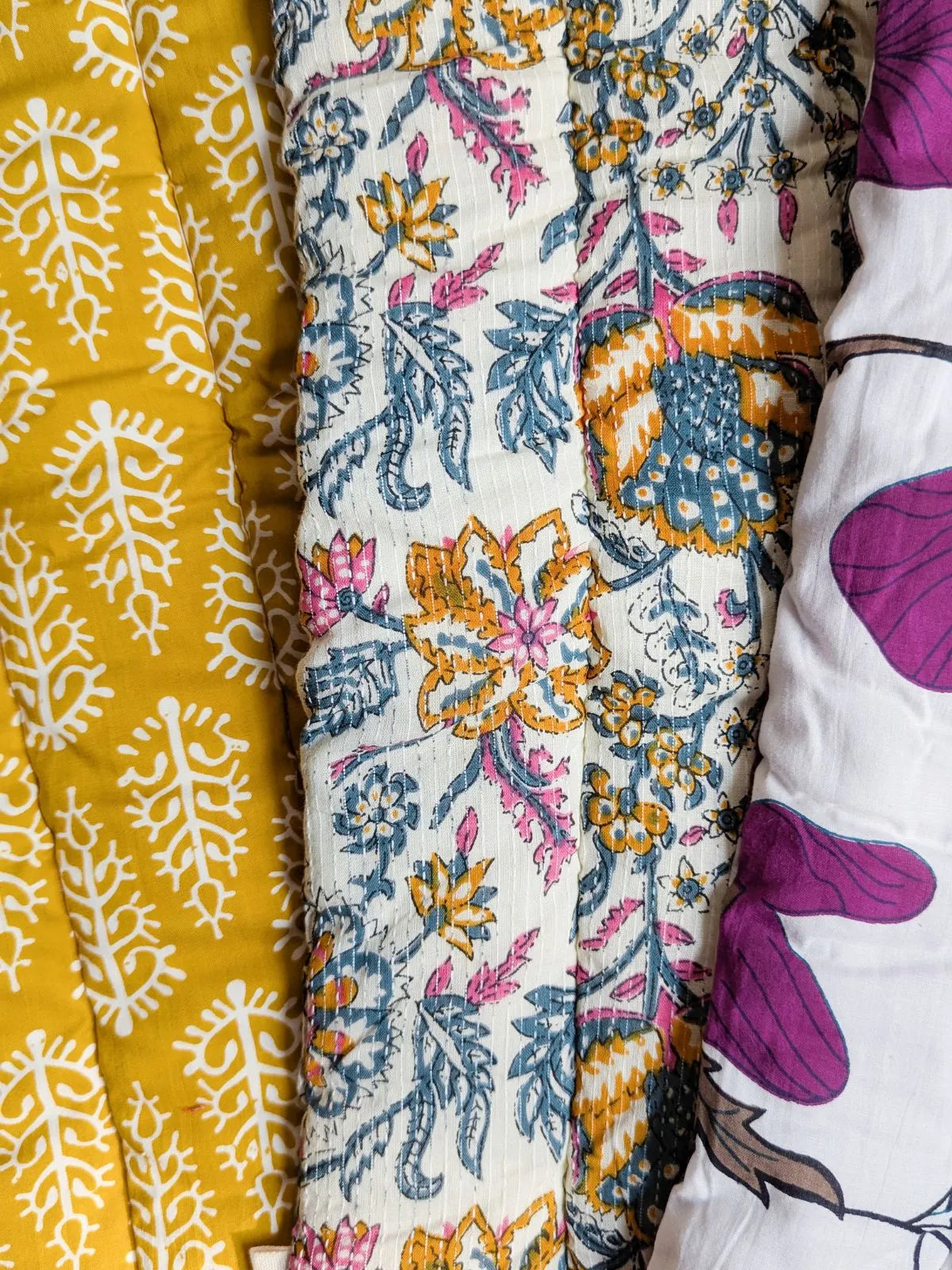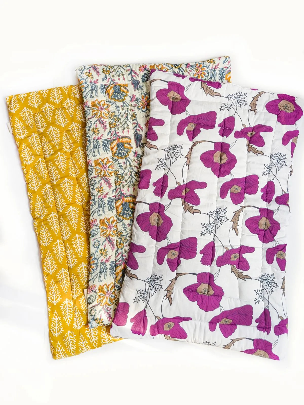 Our ultra-soft, cotton-filled Purple poppy floral Quilted Cotton Trio Mats.Whether it’s tummy time, diaper changes, or sweet nap moments, these handcrafted mats bring the warmth of grandma’s love right to your nursery. Designed for comfort, packed with love, and perfect for little ones.