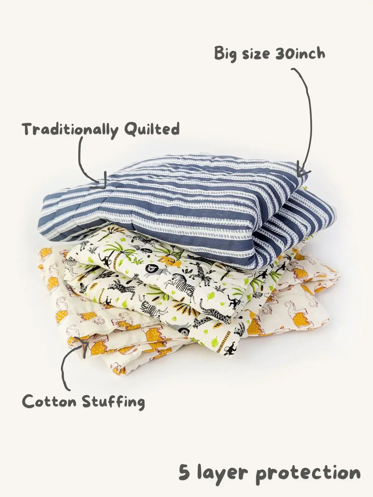 Give your baby the gift of Nani’s handmade care with our ultra-soft, Fluffy, stuffed with cotton traditional godadi ,the perfect little animals mat for cradles or diaper changes. With a perfect mix of safety, comfort, and style, it’s just like being wrapped in mothers hug.