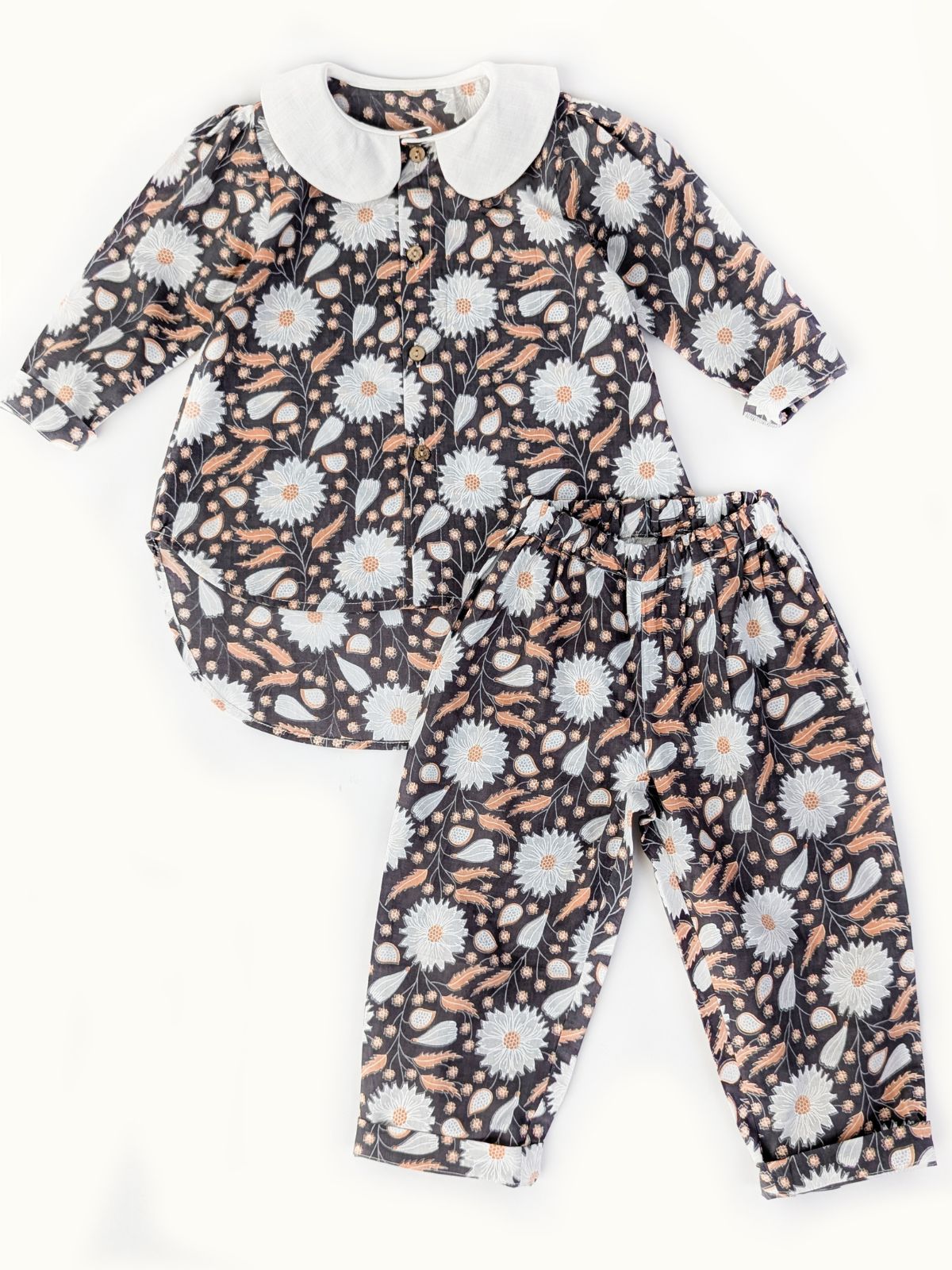 Let your baby enjoy the summer with the Grey Petal Collared Comfy Set,