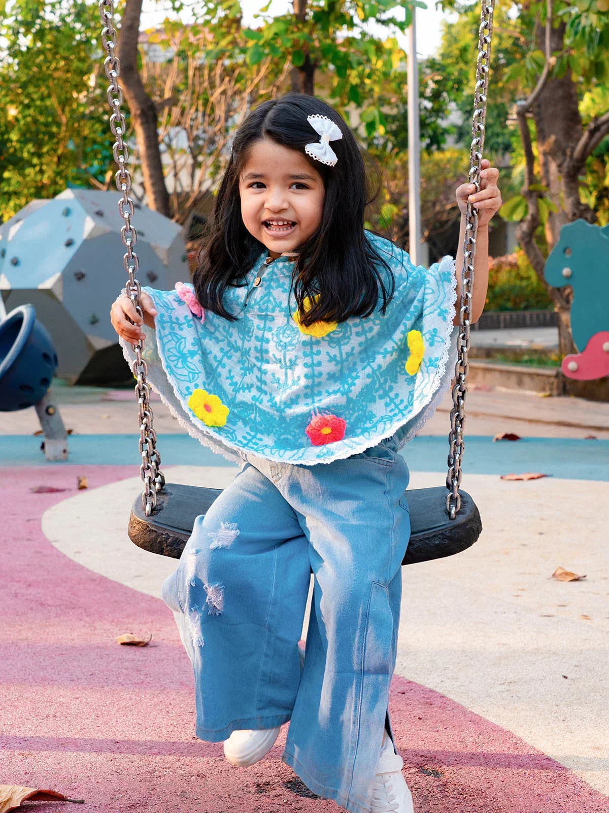This Seagreen embroidered kids poncho top is perfect for any occasion, from Travel to Picnic photoshoots to first birthdays, Party, Photoshoot, Baby wedding outfit, Birthday gift and any Special occasion. The poncho is pre-washed for your convenience.