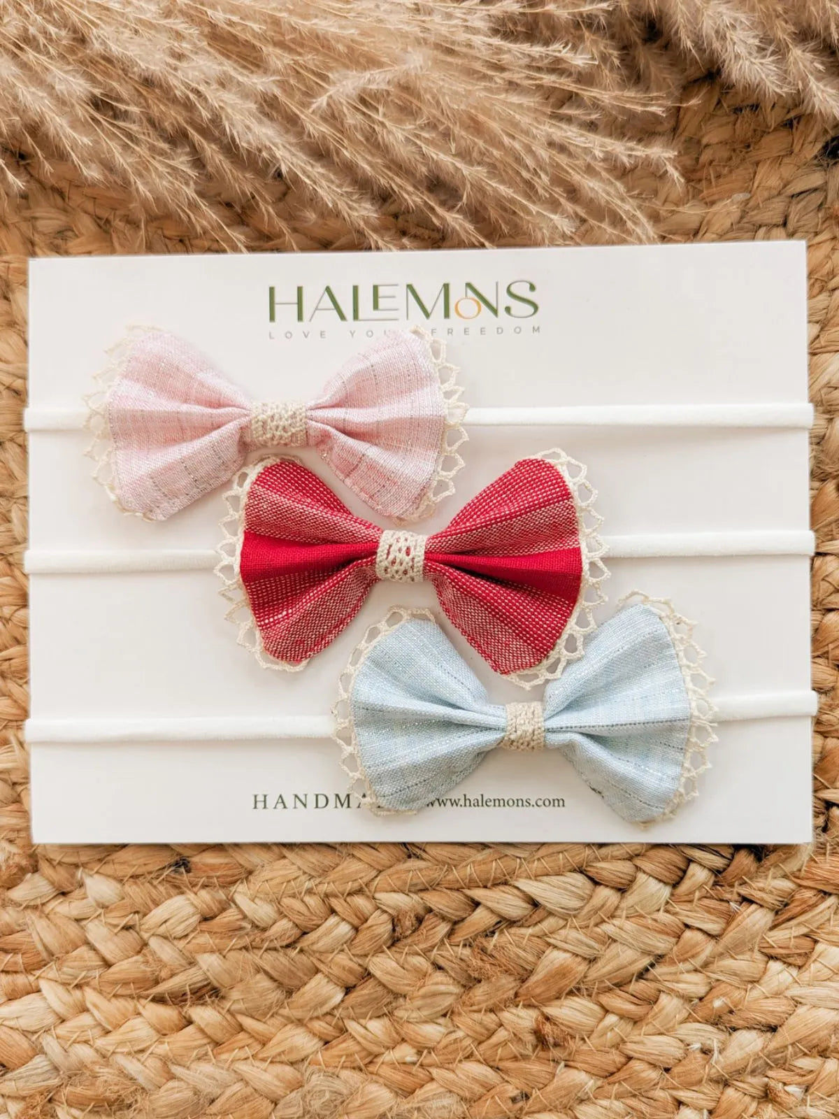 We decided to extend our love of gingham to hair accessories with our bows clips and bow bands.
