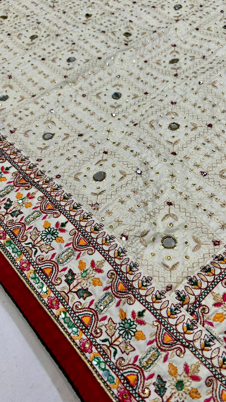 Meticulous Mirror, Stone, and Thread Work: Indulge in the meticulous craftsmanship of mirror, stone, and thread work, creating a harmonious blend of textures that defines the royal charm of this ensemble.