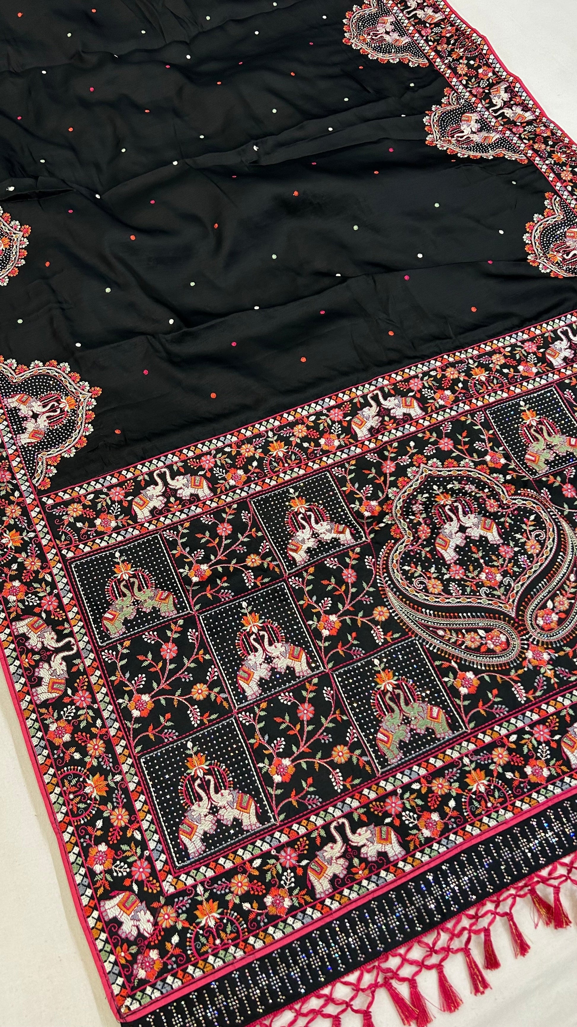 Kutchi Embroidery Black Saree