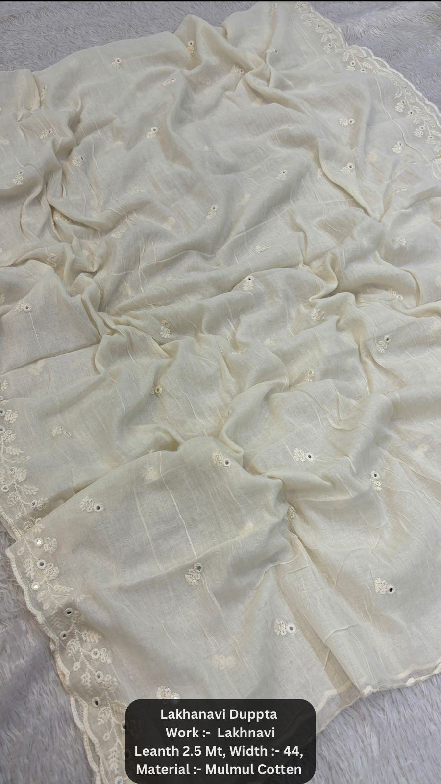 "Charming Lakhnavi dupatta featuring exquisite chikankari embroidery."