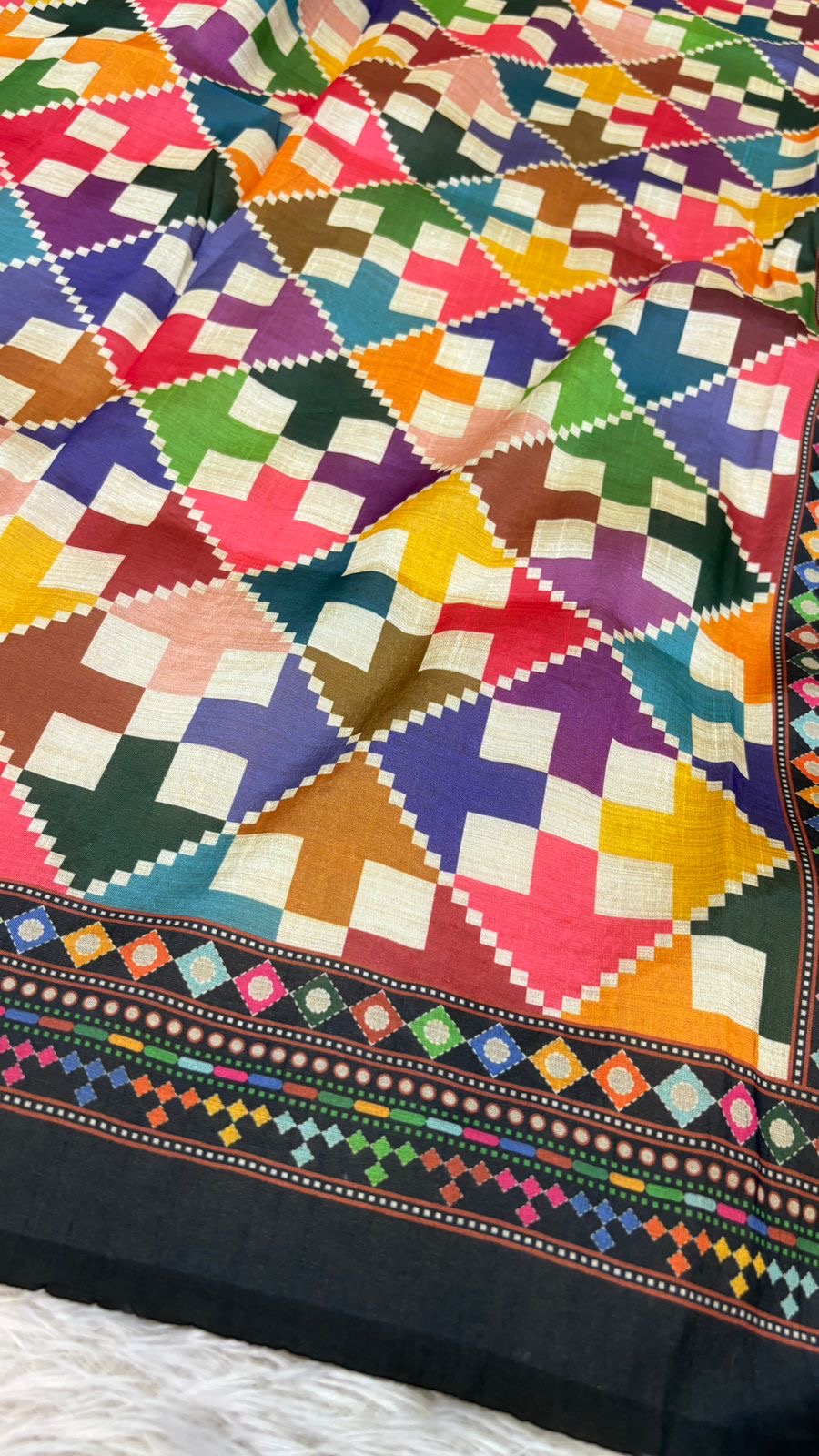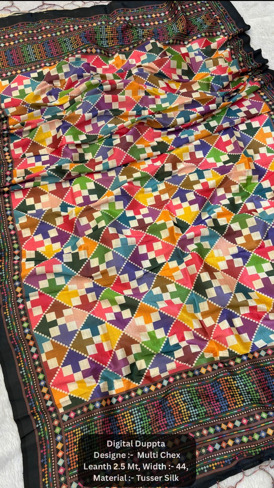 "Order now: Stylish Tusser Silk dupatta with vibrant digital print for ₹450. Perfect for adding a contemporary touch to lehengas, salwar kameez, and sarees."