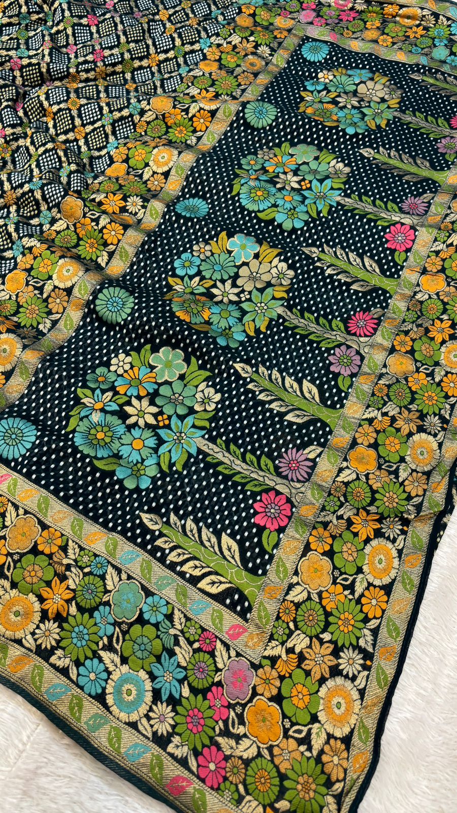 "Order your exquisite Crepe Georgette Banarasi Bandhej Saree now and elevate your traditional wardrobe with this timeless masterpiece!"