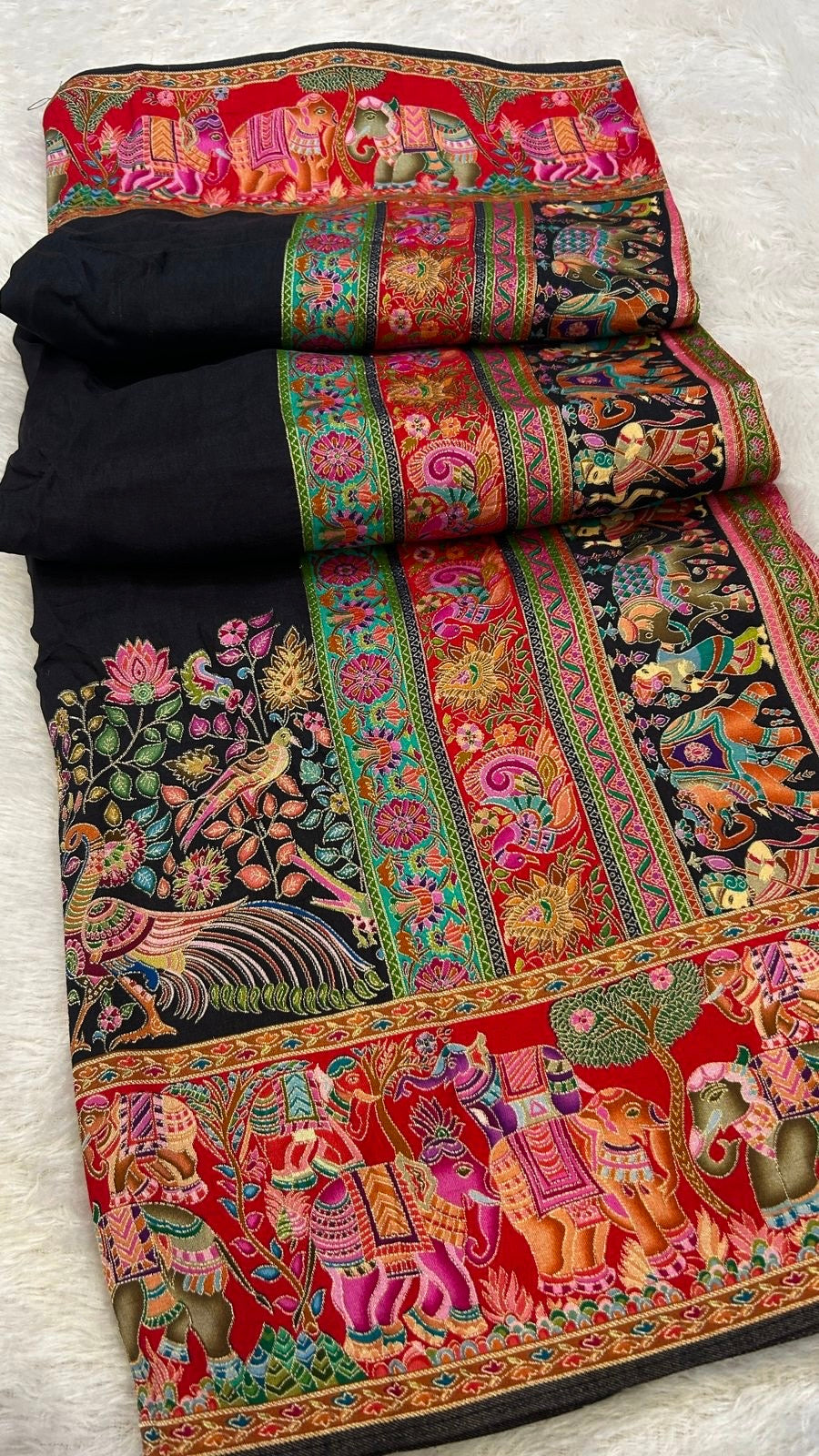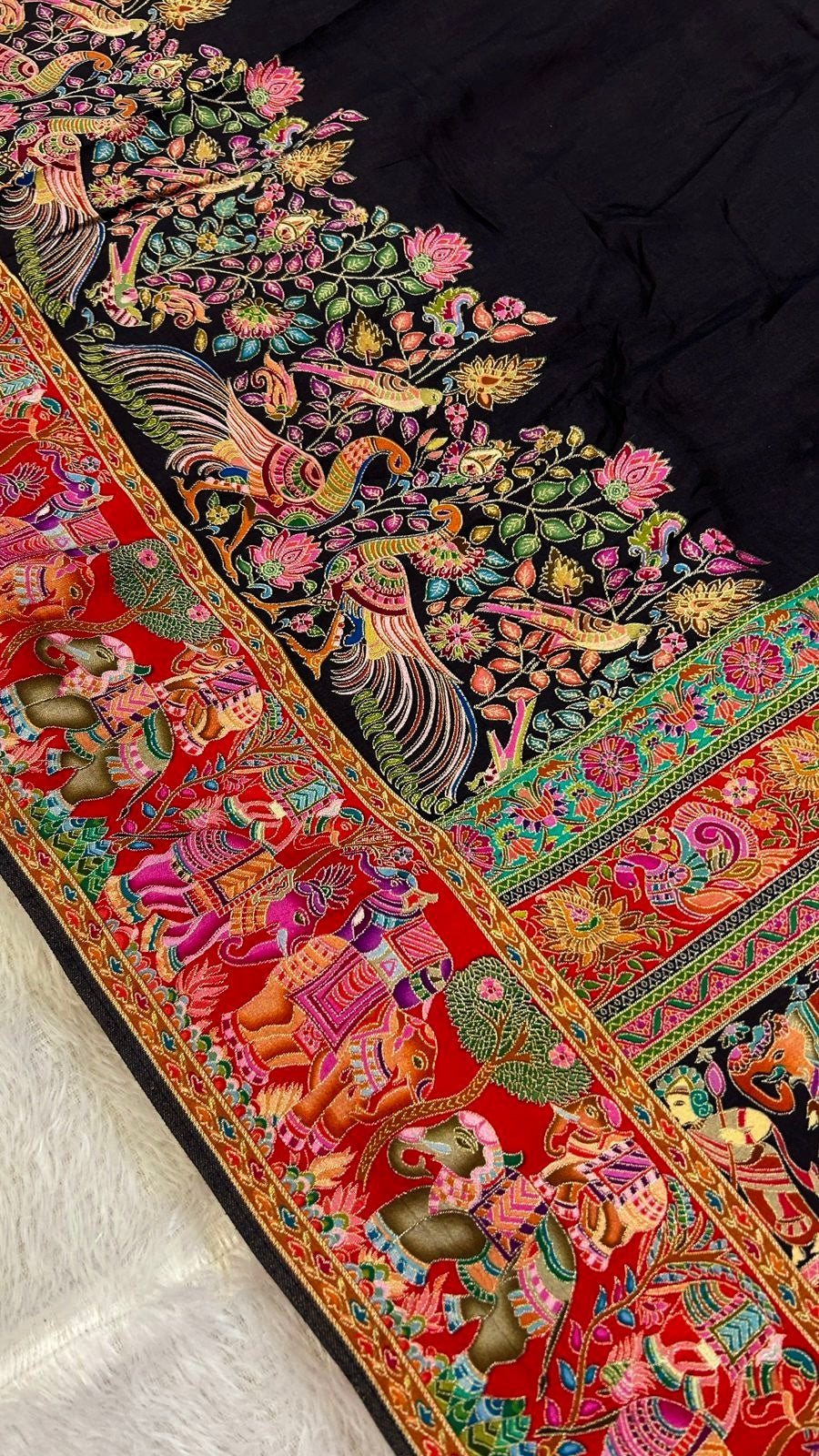 Pure Hand Weaving Kalamkari Saree (Black Gala)