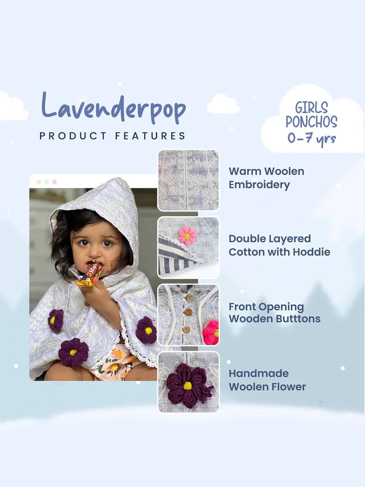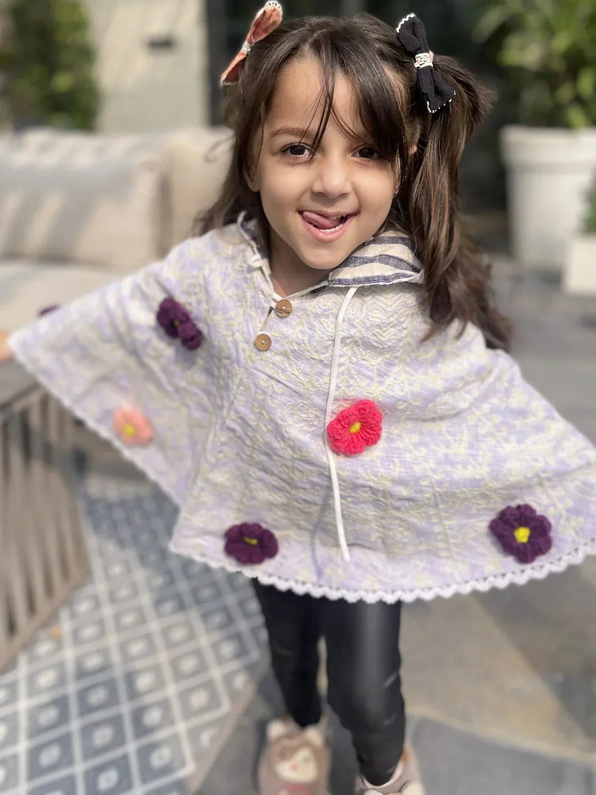 This Lavender embroidered kids poncho top is perfect for any occasion, from Travel to Picnic photoshoots to first birthdays, Party, Photoshoot, Baby wedding outfit, Birthday gift and any Special occasion. The poncho is pre-washed for your convenience.