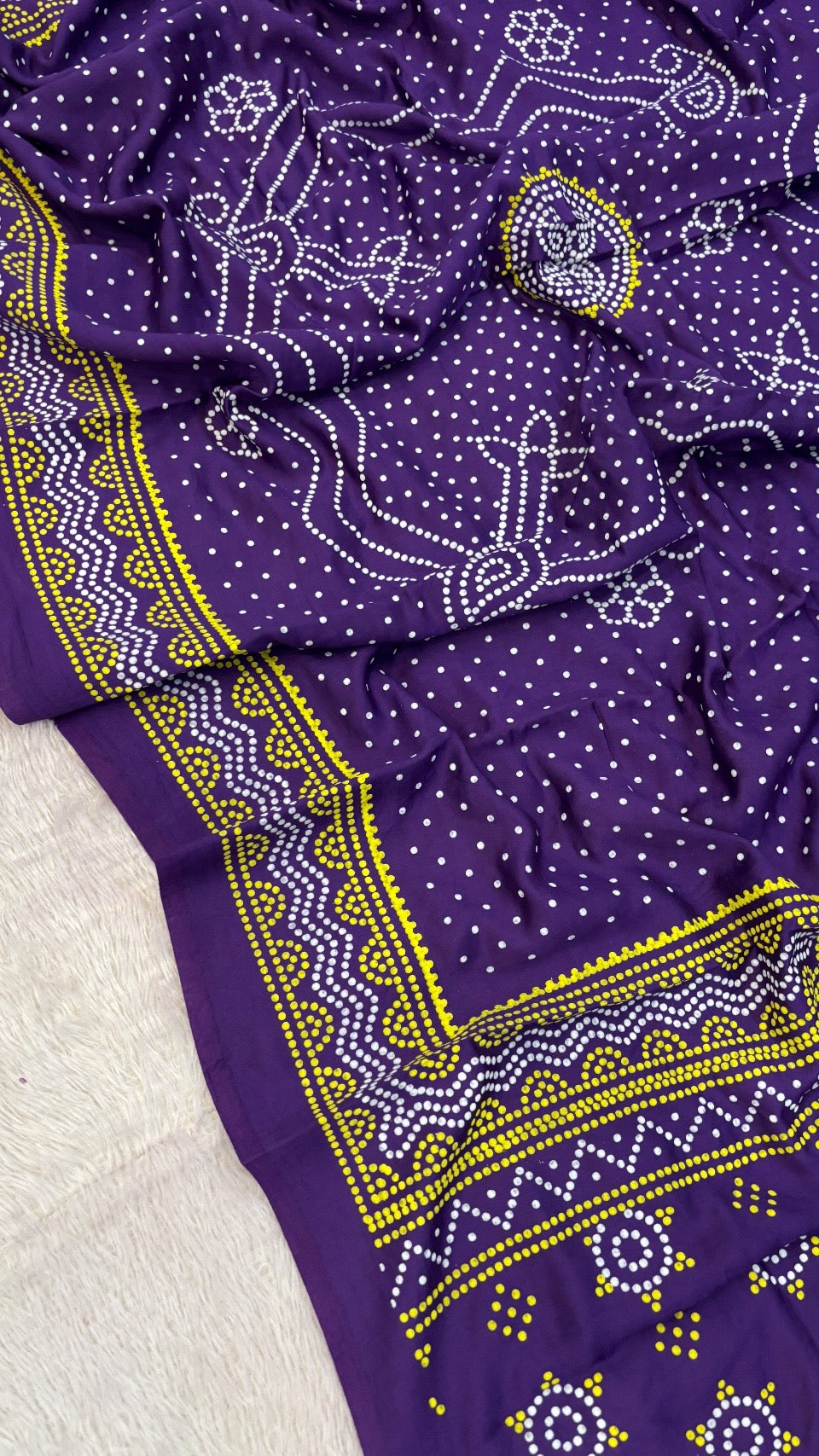 Design: Featuring the Khadi Raas Mandal, the dupatta boasts vibrant prints that are both eye-catching and culturally significant. The bandhani pattern adds a touch of authenticity and charm.