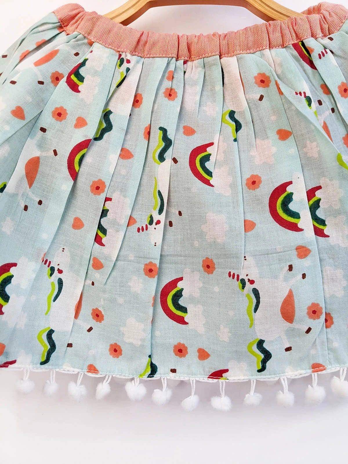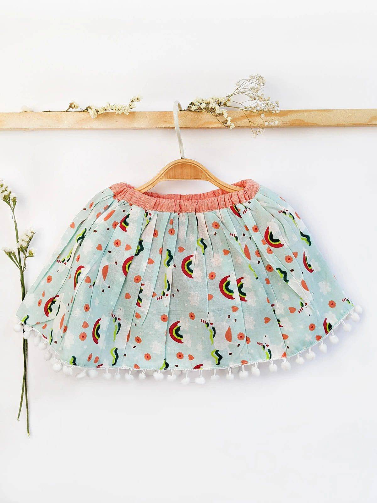 Rainbow Printed Baby Girl Cotton Skirt With Bloomer and Top