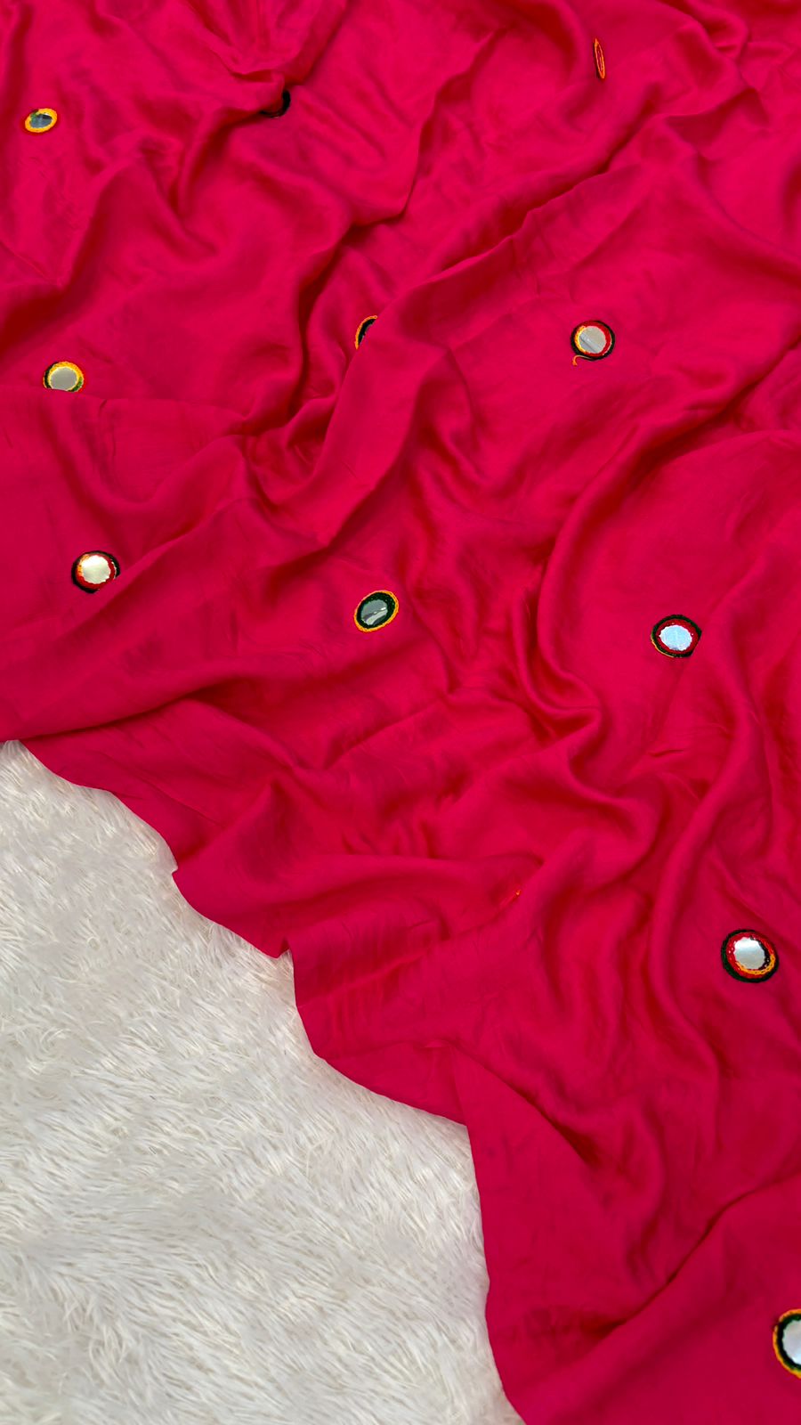 This exquisite mirror work dupatta, priced at just ₹400, adds a touch of shimmering elegance to any outfit. The intricate mirror detailing is a testament to traditional craftsmanship, making it a perfect accessory for both casual and festive occasions. Lightweight and versatile, this dupatta can effortlessly elevate your look with its timeless charm and vibrant appeal.