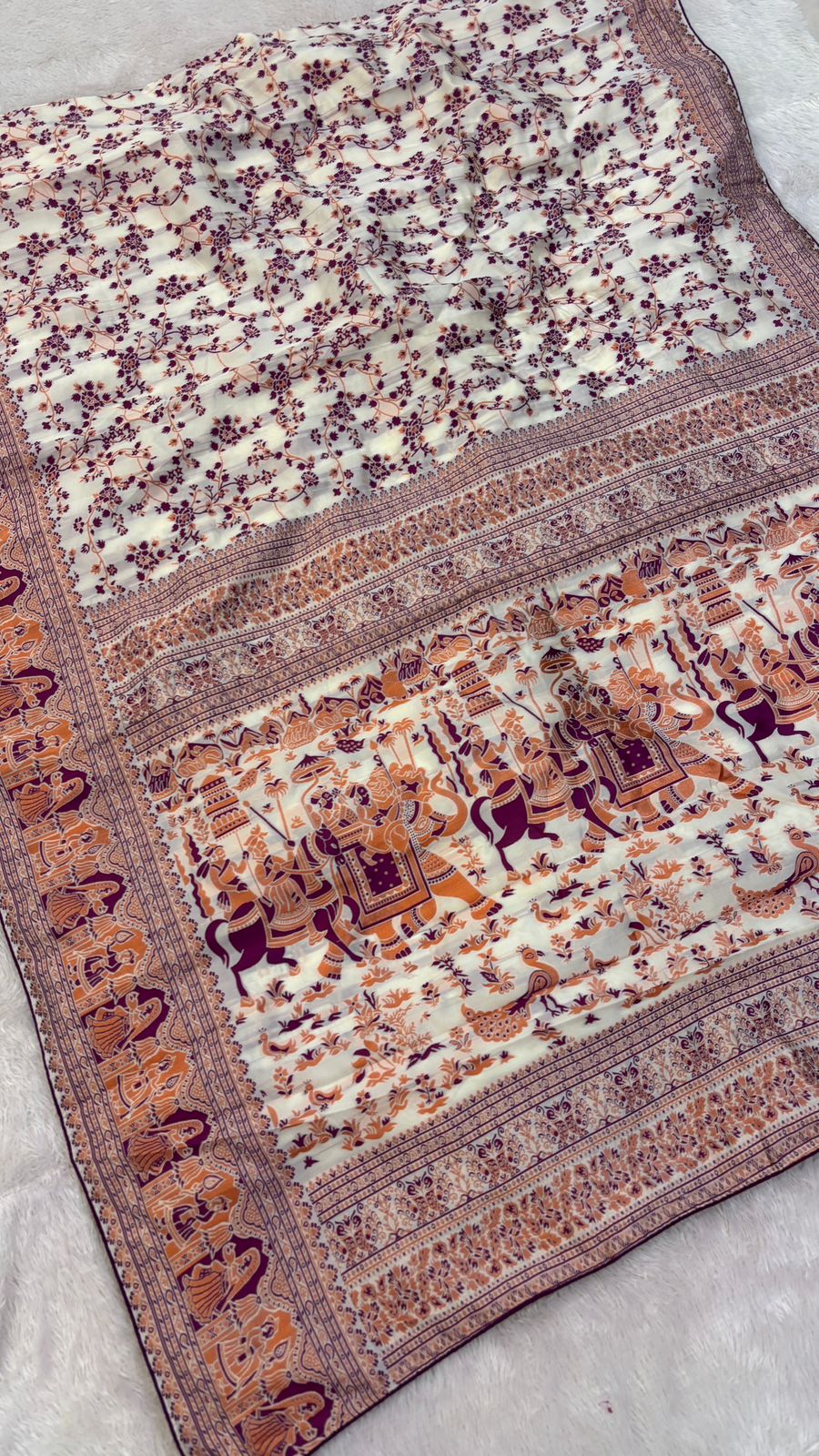 "Experience the timeless elegance of soft silk Rajwadi sarees, woven with regal grace and unparalleled craftsmanship."