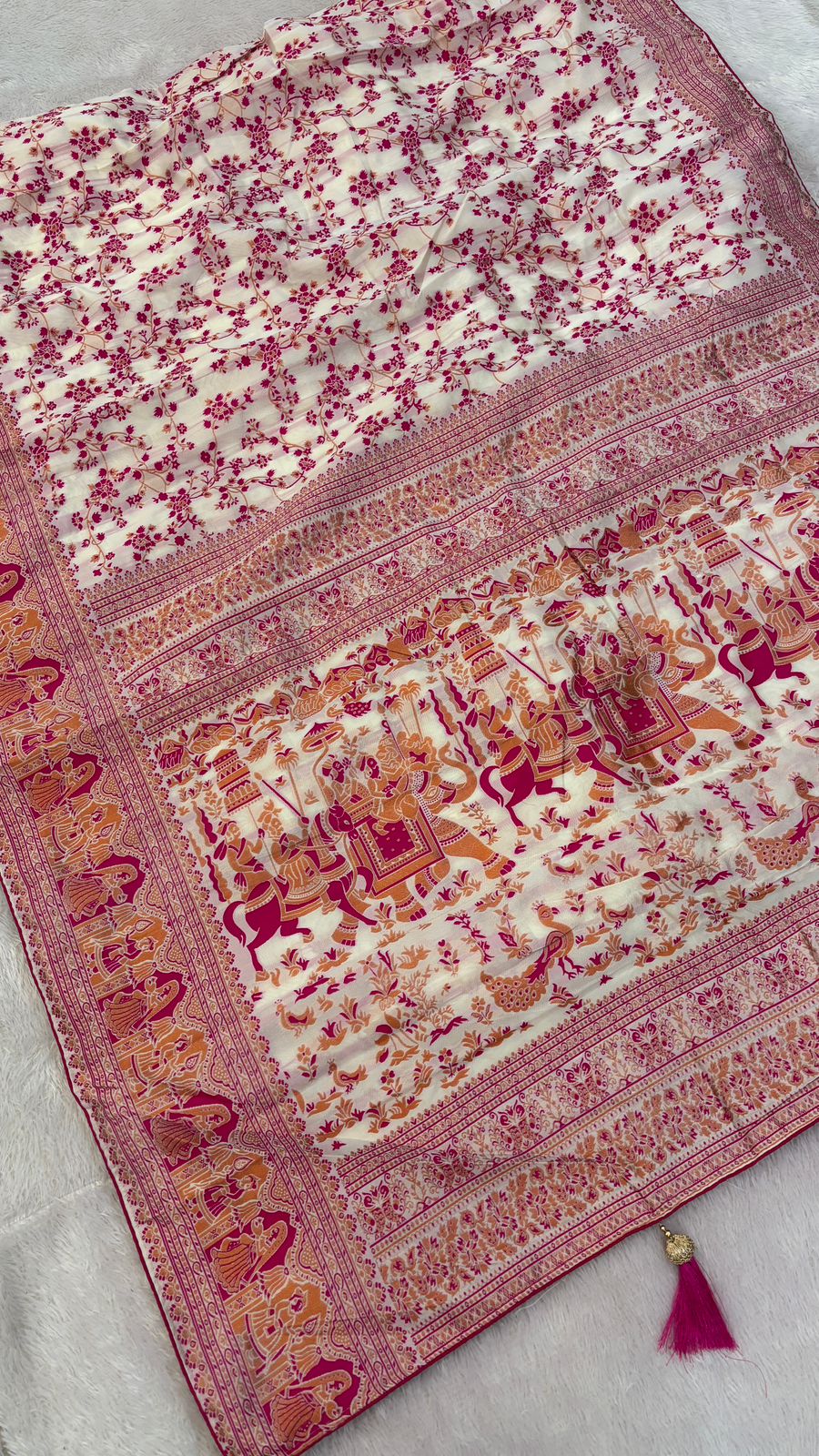 Soft Silk Rajwadi Saree (Pashmina Designe) :- RANI COLOR