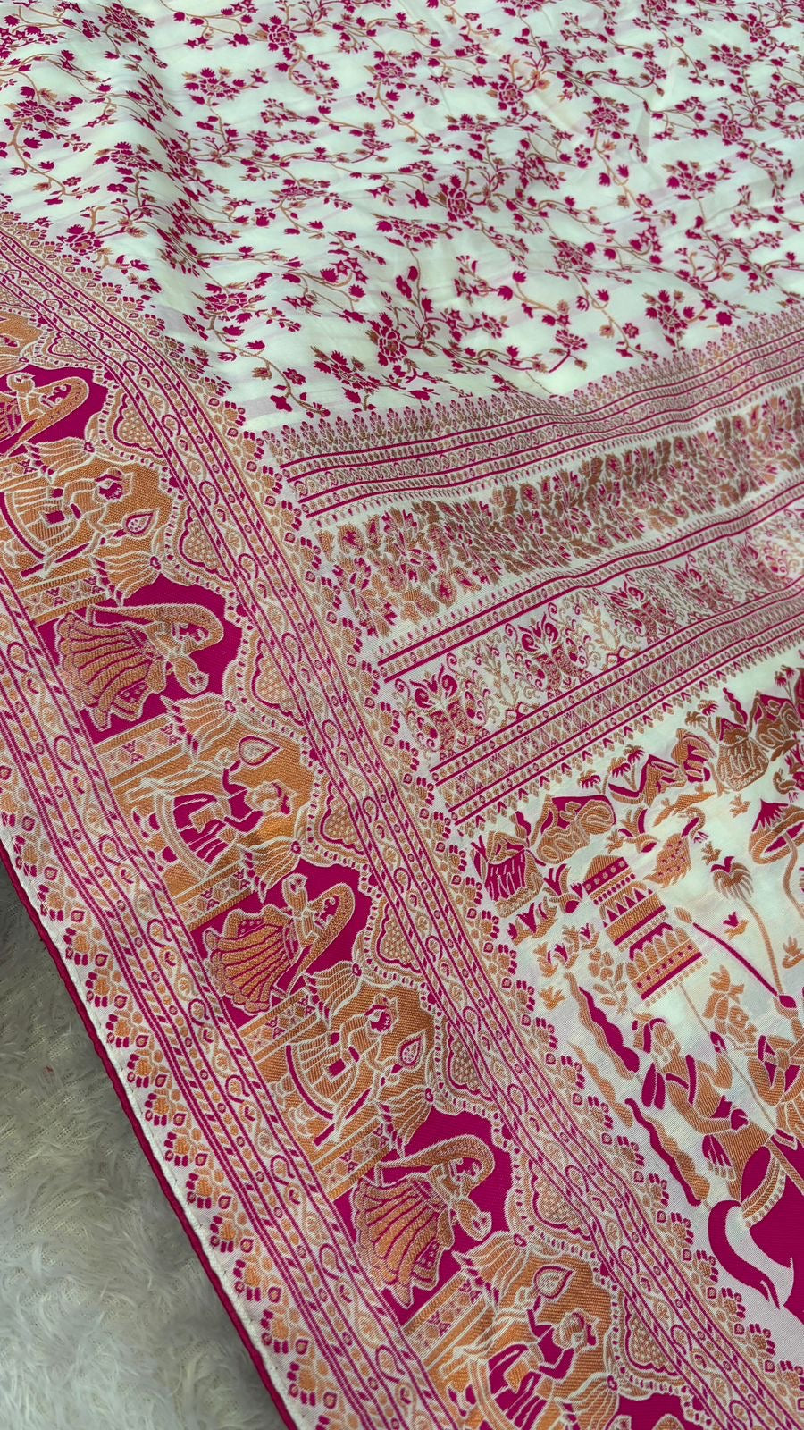"Experience the timeless elegance of soft silk Rajwadi sarees, woven with regal grace and unparalleled craftsmanship."