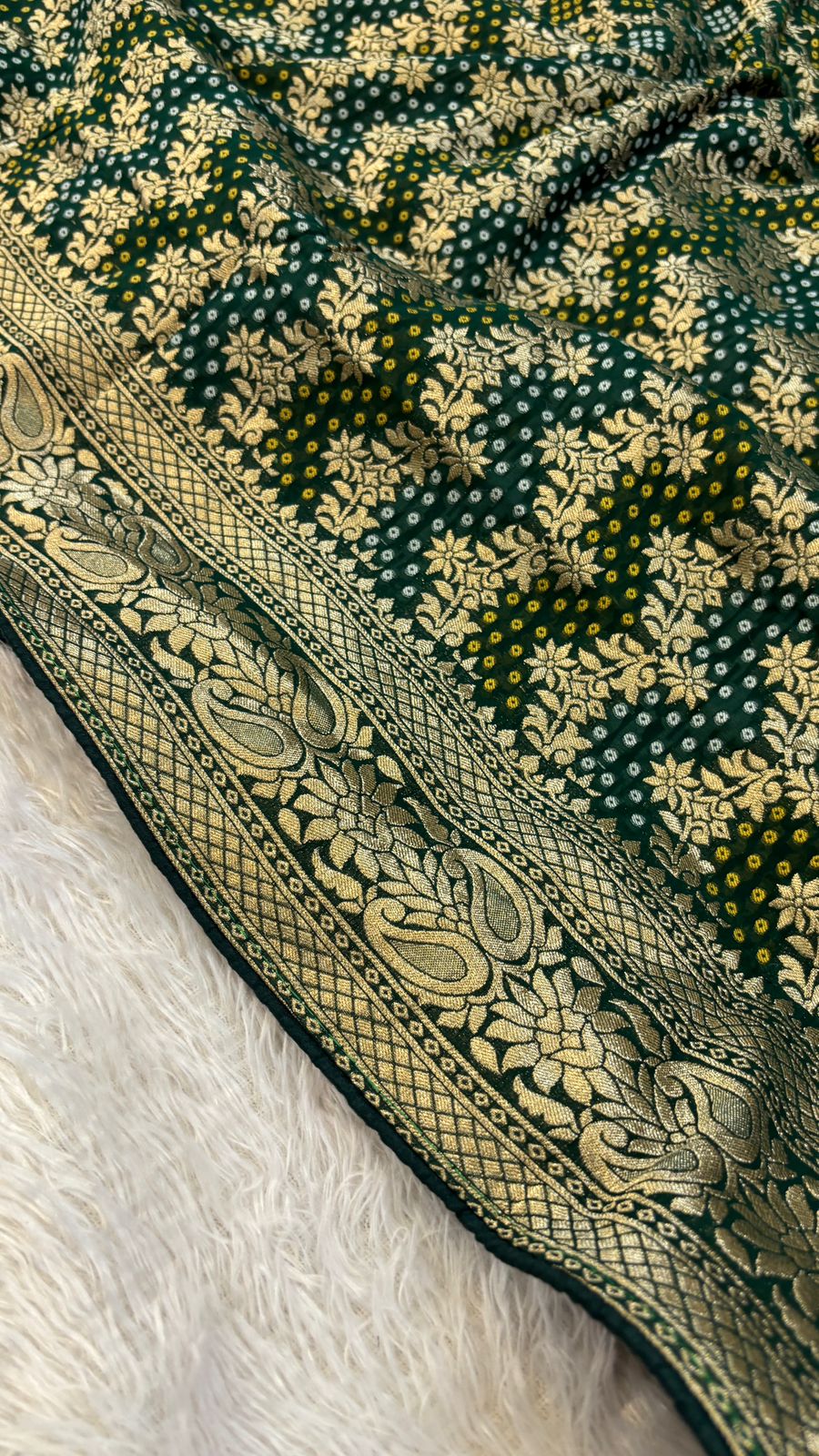 "Order your exquisite Georgette Banarasi Bandhej Saree now and elevate your traditional wardrobe with this timeless masterpiece!"