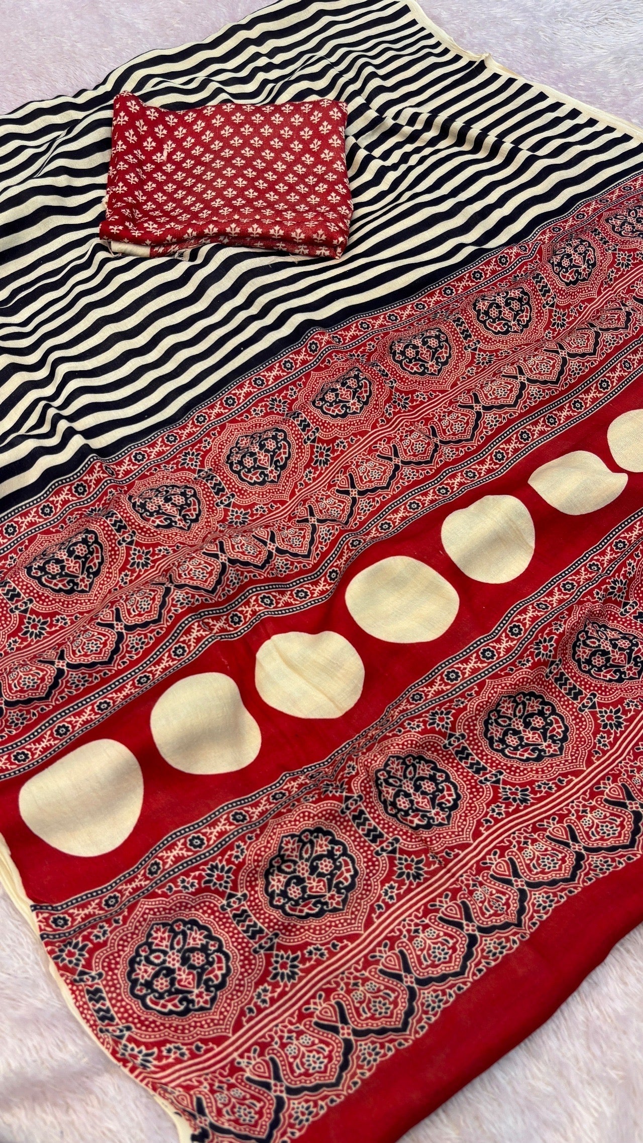 "Pure Model Ajrakh Stripe Saree - Only ₹1350 for Unmatched Elegance!"