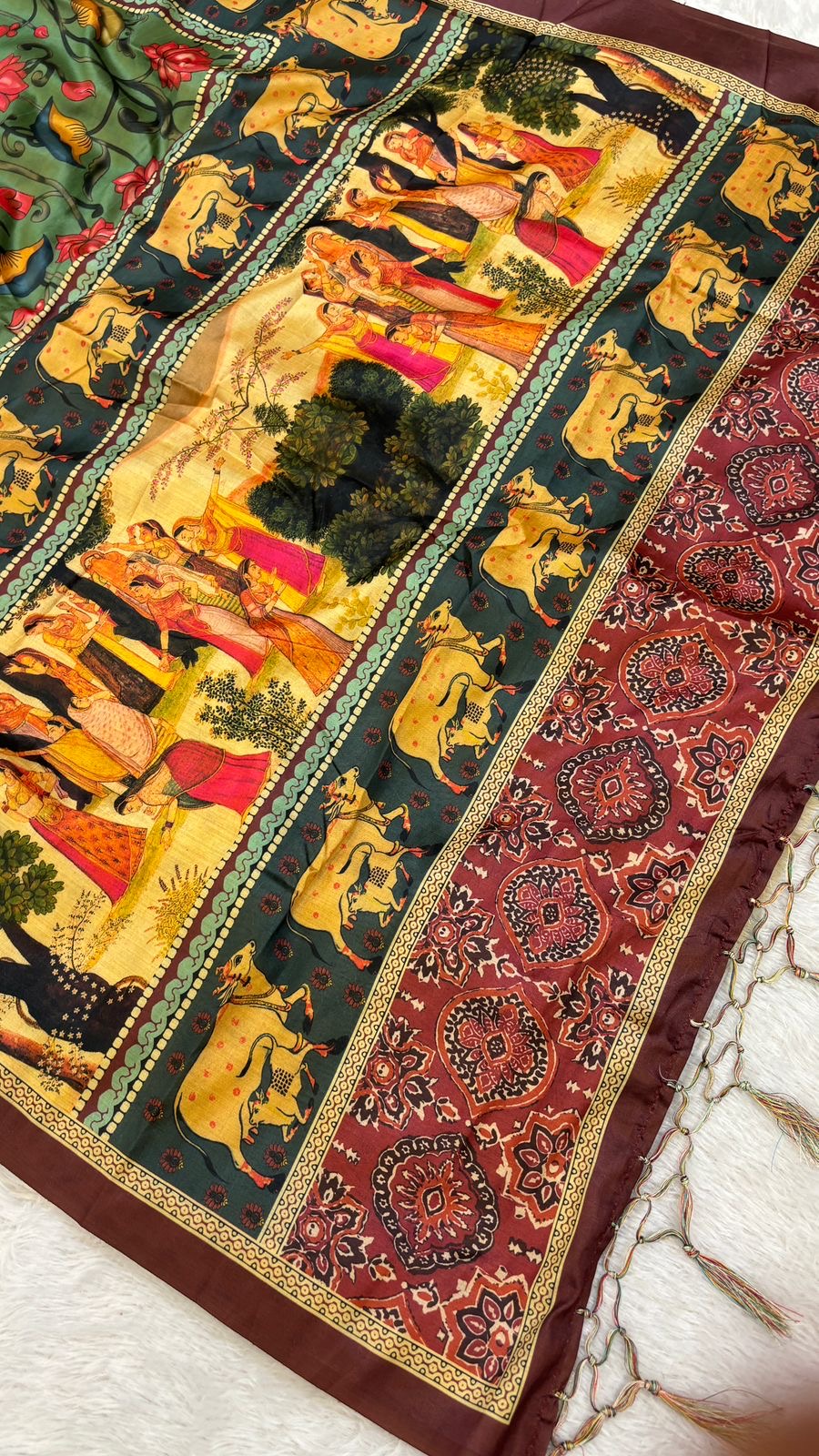 - Regal Pallu: Features a Rajwadi design with ornate motifs and delicate tassels for a royal touch.