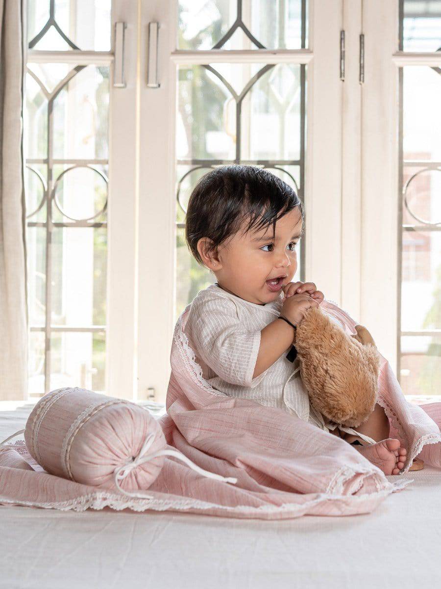 Washed Organic Cotton Newborn Baby Peach Blanket and Bolster Set