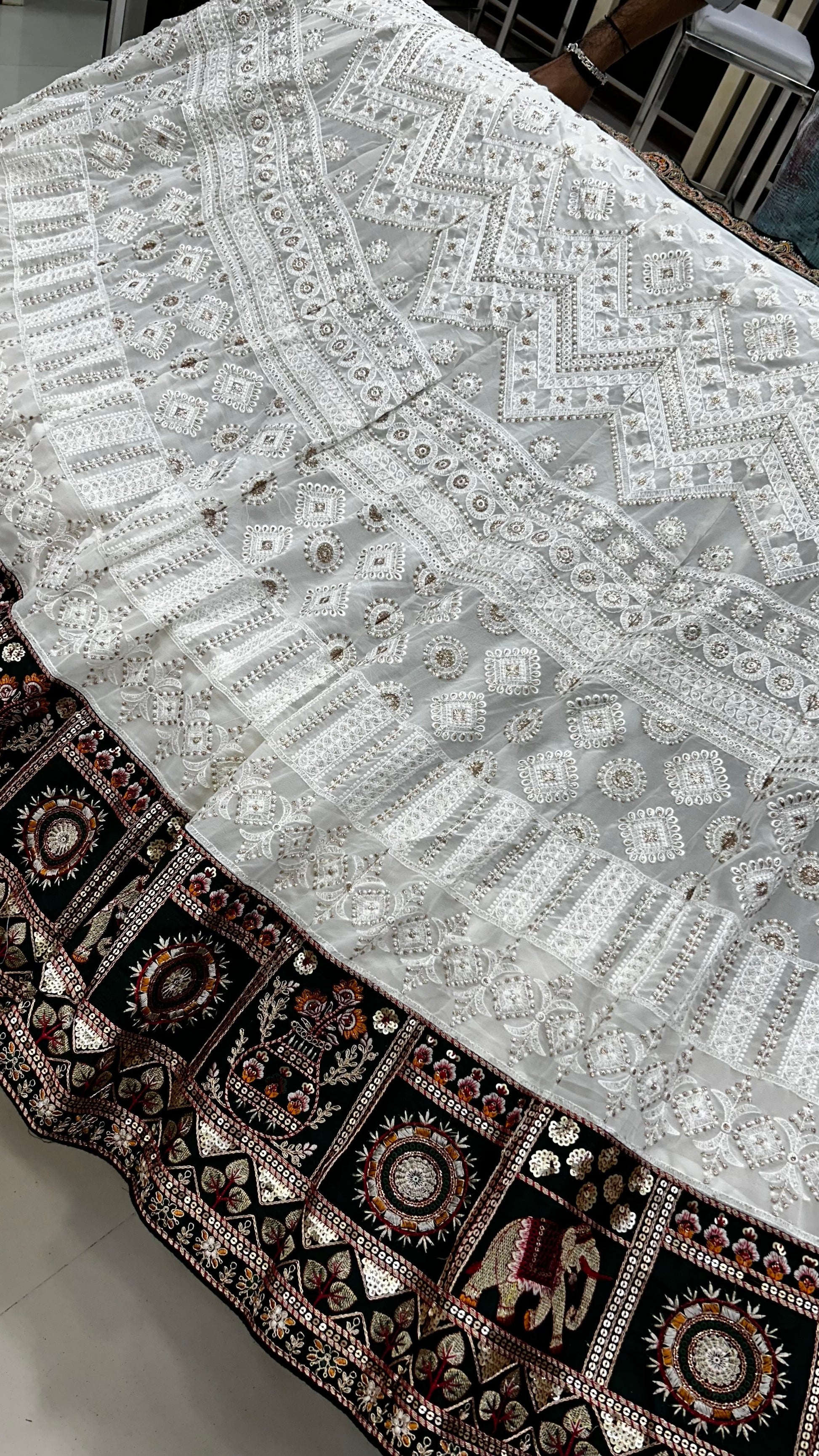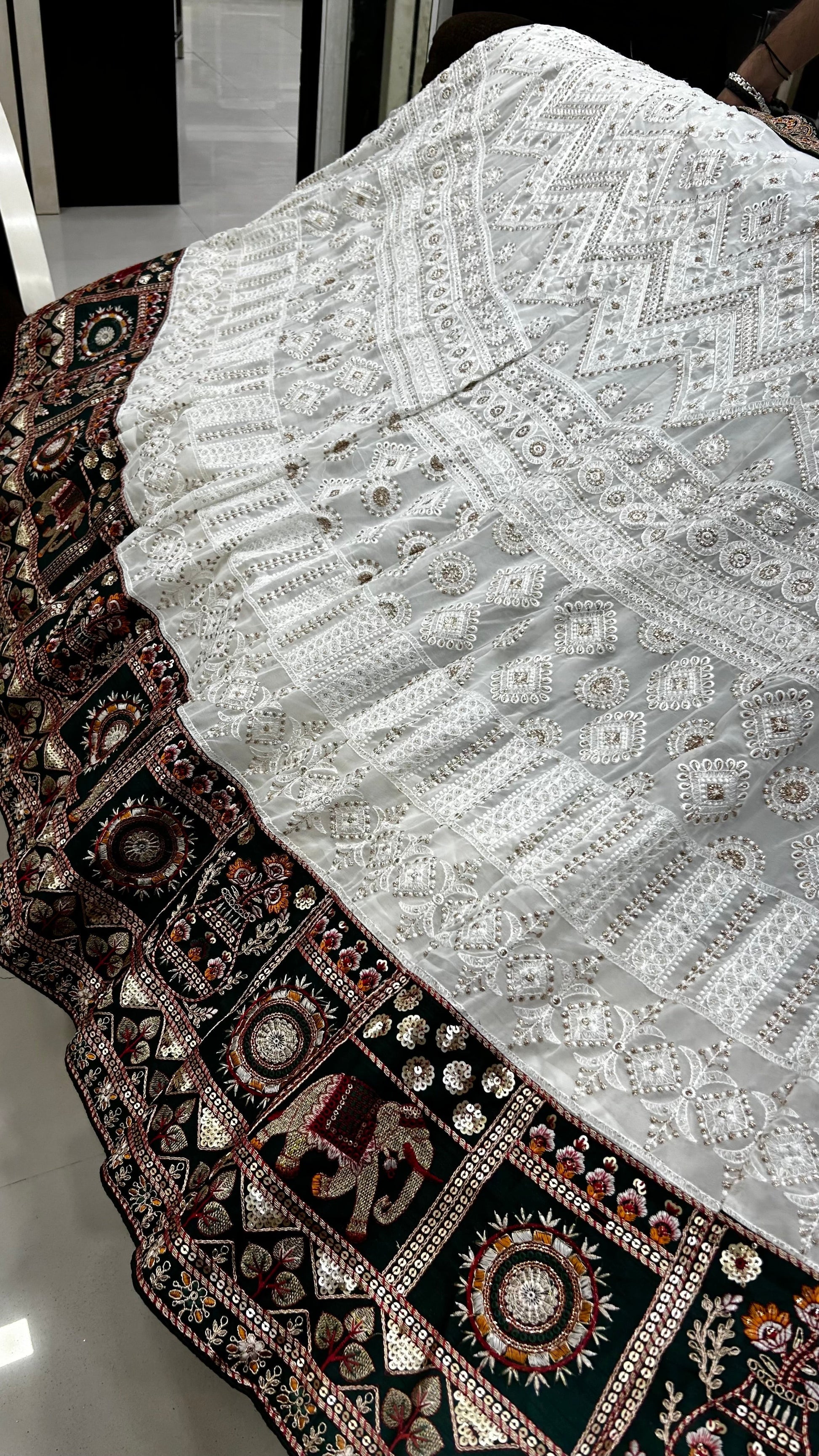 White Dola Silk With Bandhani Duppta Lehanga Choli