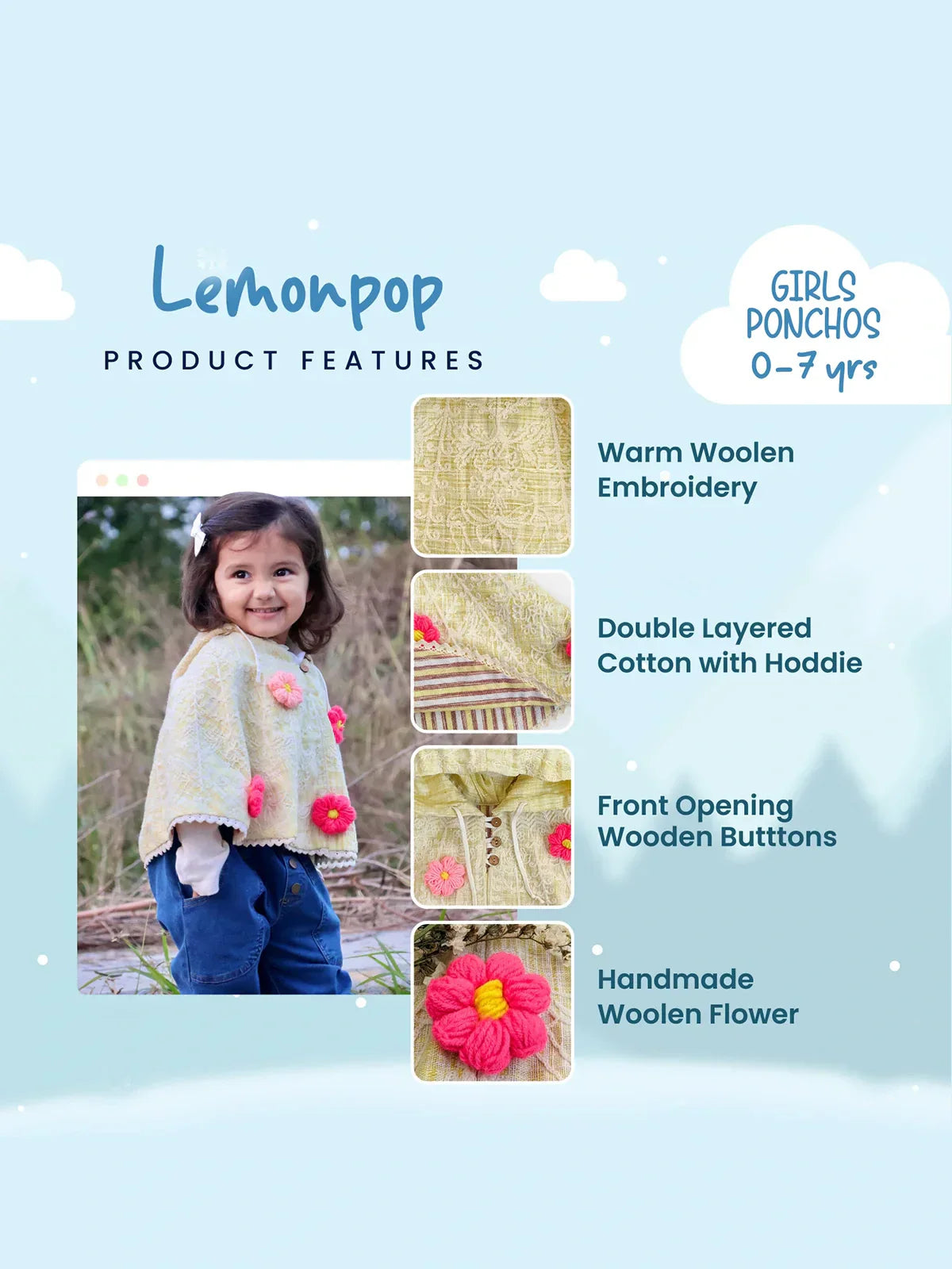 This Lemons embroidered kids poncho top is perfect for any occasion, from Travel to Picnic photoshoots to first birthdays, Party, Photoshoot, Baby wedding outfit, Birthday gift and any Special occasion. The poncho is pre-washed for your convenience.