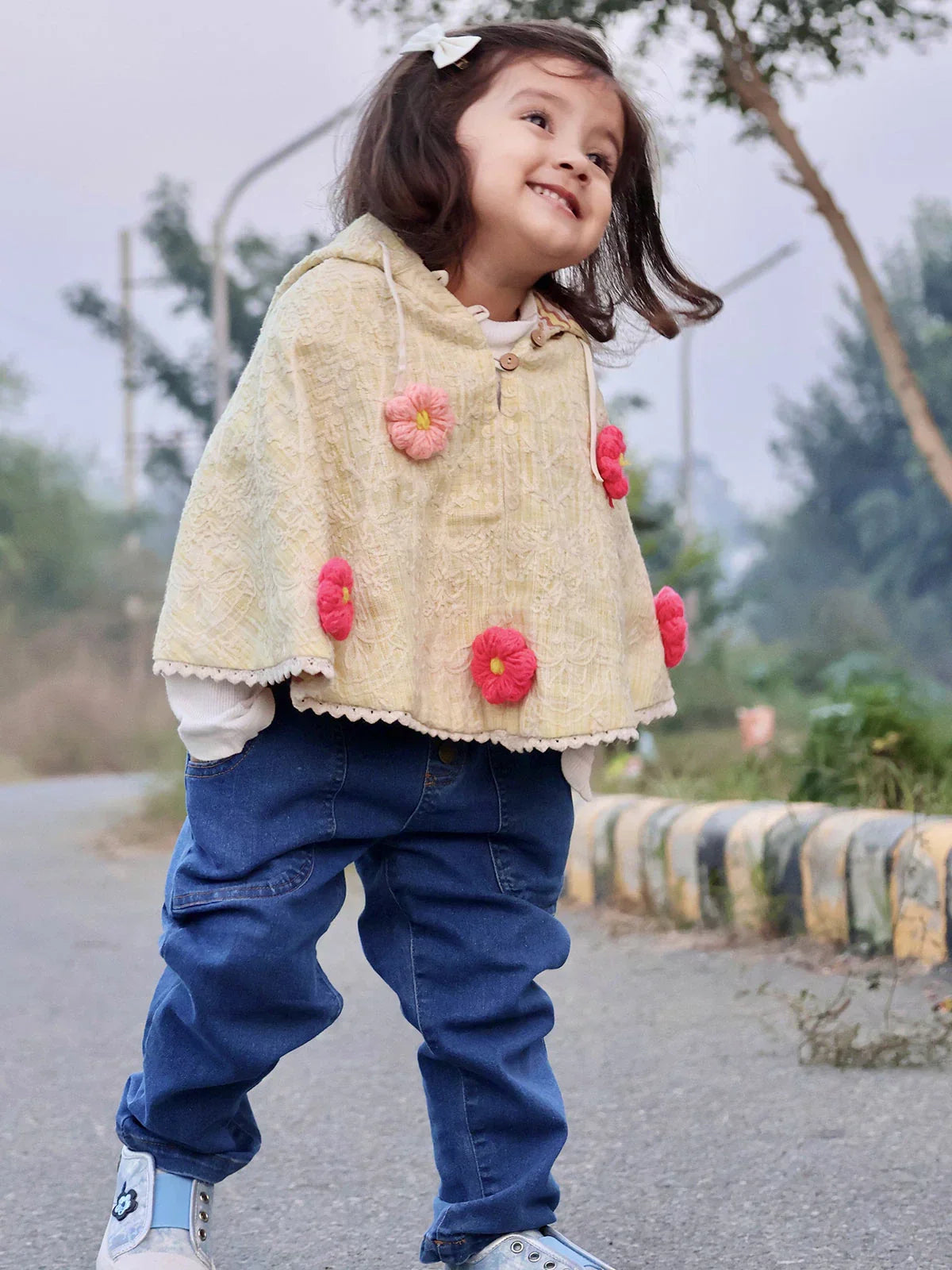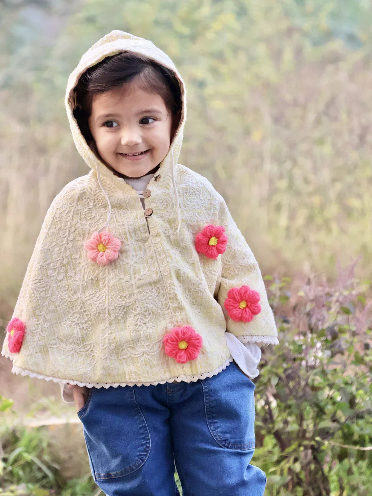 Yellow Handmade Flower Spring Baby Girl Poncho Top